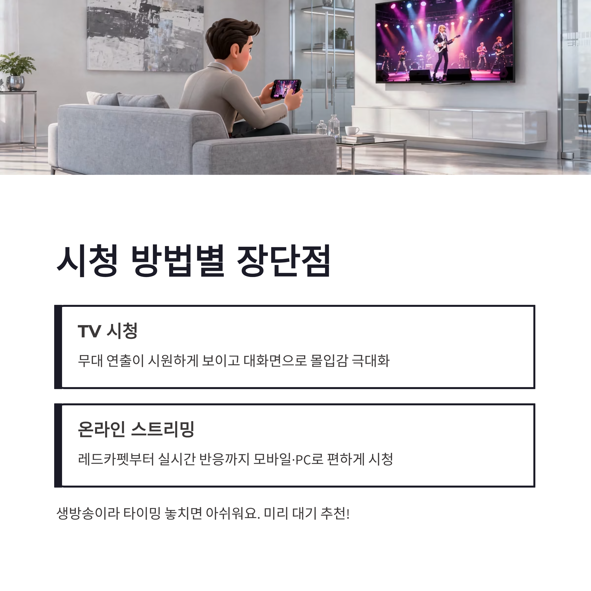 골든디스크 2026 큐시트 순서도 미리 알아두면 훨씬 편합니다. 보통 레드카펫 → 오프닝 무대 → 본 시상 → 대상 발표 흐름으로 가요. 레드카펫은 본방 30~40분 전부터 시작하는 경우가 많아서, 스타일 보는 재미가 쏠쏠합니다. 저도 매번 이 시간엔 채널 안 돌리고 고정…