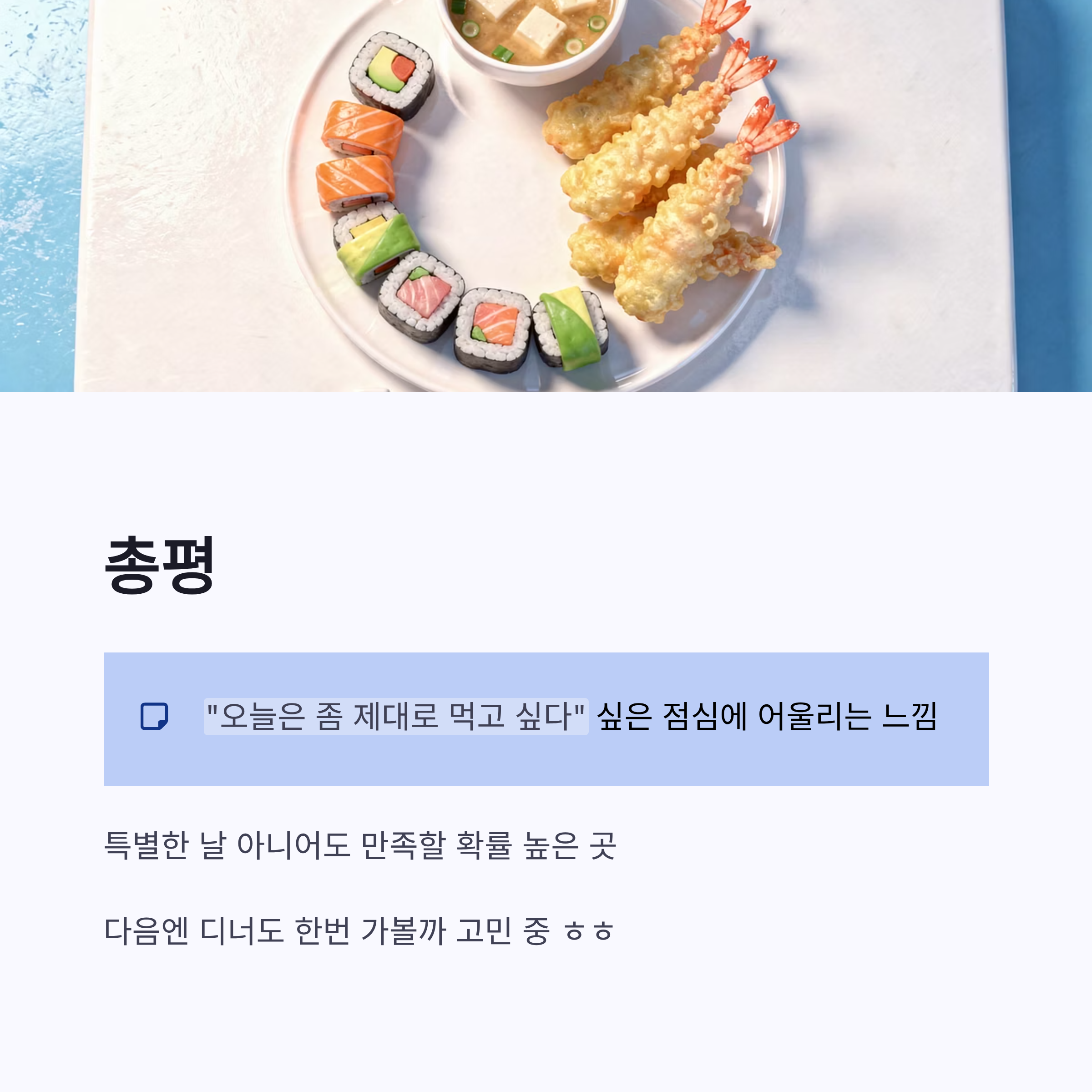 결론적으로 광주 가매일식 런치 정식은 한 끼를 차분하게 즐기고 싶은 날에 딱이었습니다. 특별한 날 아니어도, “오늘은 좀 제대로 먹고 싶다” 싶은 점심에 어울리는 느낌이랄까요. 화려함보다 안정감, 일본식보다 남도 감성에 가까운 오마카세를 찾는다면 만족할 확률 높을 것 같더라구요. 다음엔 디너도 한번 가볼까 살짝 고민 중입니다 ㅎㅎ