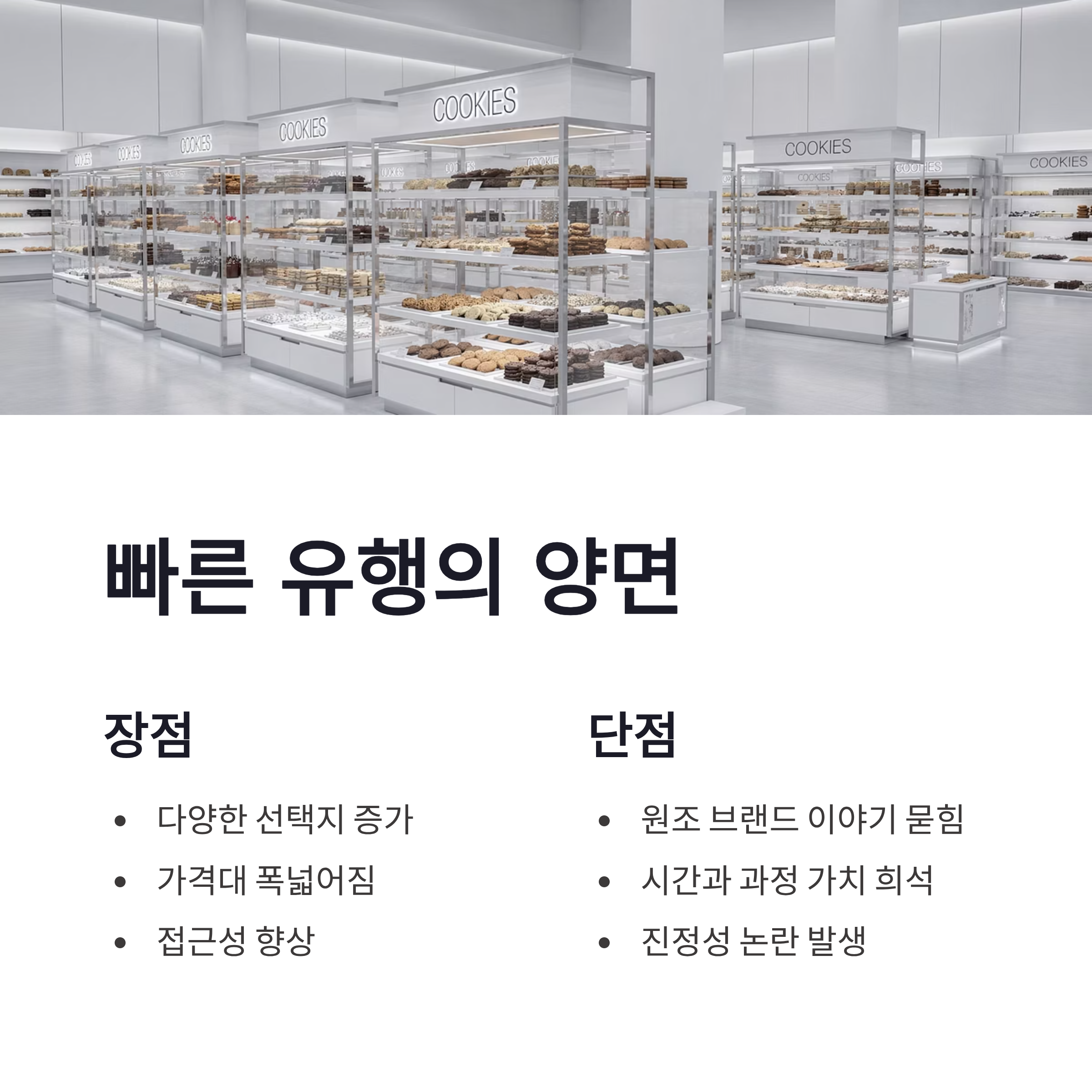 요즘 디저트 시장 보면 진짜 무섭게 빠르잖아요. 하나 뜨면 비슷한 제품이 우르르 나옵니다. 두바이 쫀득 쿠키도 딱 그 흐름이었어요. 레시피가 공개된 것도 아니고, 특허로 딱 막아놓은 것도 아니다 보니, 소비자 입장에서는 “어디가 원조야?” 헷갈릴 수밖에 없죠. 장점도 분명 있습니다. 선택지가 많아지고, 가격도 다양해지고요. 근데 단점도 있어요. 먼저 만들었던 브랜드의 이야기가 묻힌다는 점이요. 두바이 쫀득 쿠키 원조 논란은 결국 맛의 문제가 아니라, 시간과 과정의 문제 같더라구요. 누가 더 잘 팔았느냐보다, 누가 먼저 고민했느냐에 가까운 느낌이랄까… 음 좀 묘했어요.