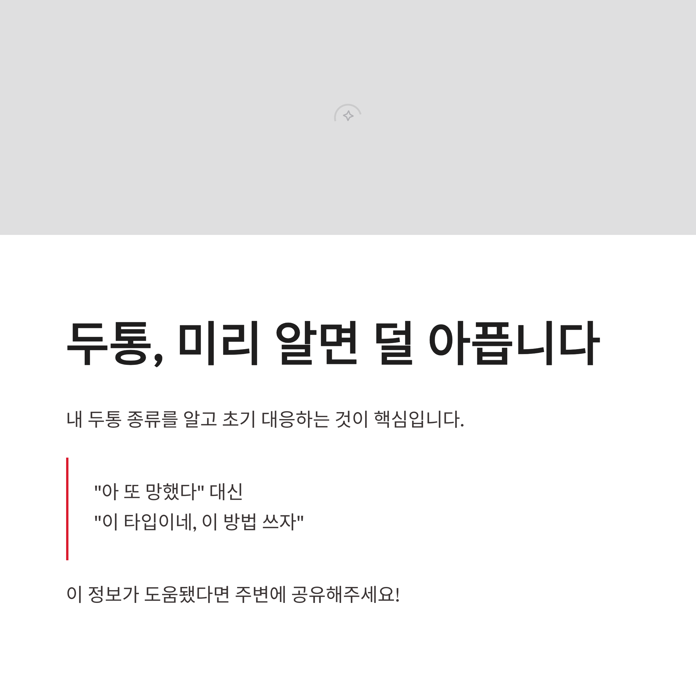 다음에 두통 오면 “아 또 망했다…” 말고, “오케이, 이 타입이네. 이 방법 쓰자” 이렇게 대응해보는 거 어때요? 여러분은 두통 오면 제일 먼저 뭐부터 하세요? 저만 이렇게 예민한 건지 궁금하네요 ㅎㅎ
