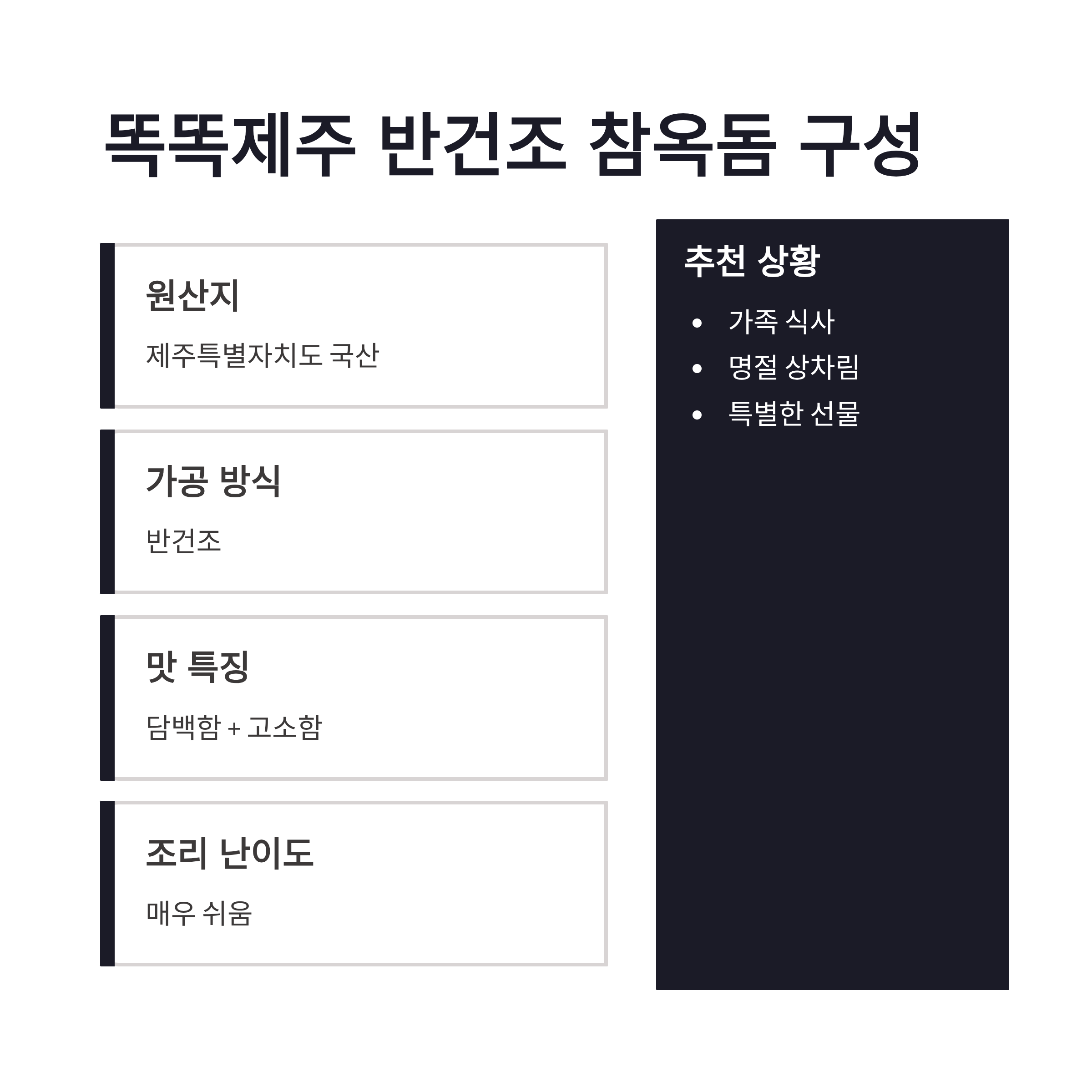 #똑똑제주반건조참옥돔 #제주옥돔 #옥돔반건조 #참옥돔 #제주해산물 #제주생선 #고급생선 #반건조생선 #집들이음식 #부모님선물 #명절선물추천 #제주특산물 #담백한생선 #건강한식탁 #집밥메뉴