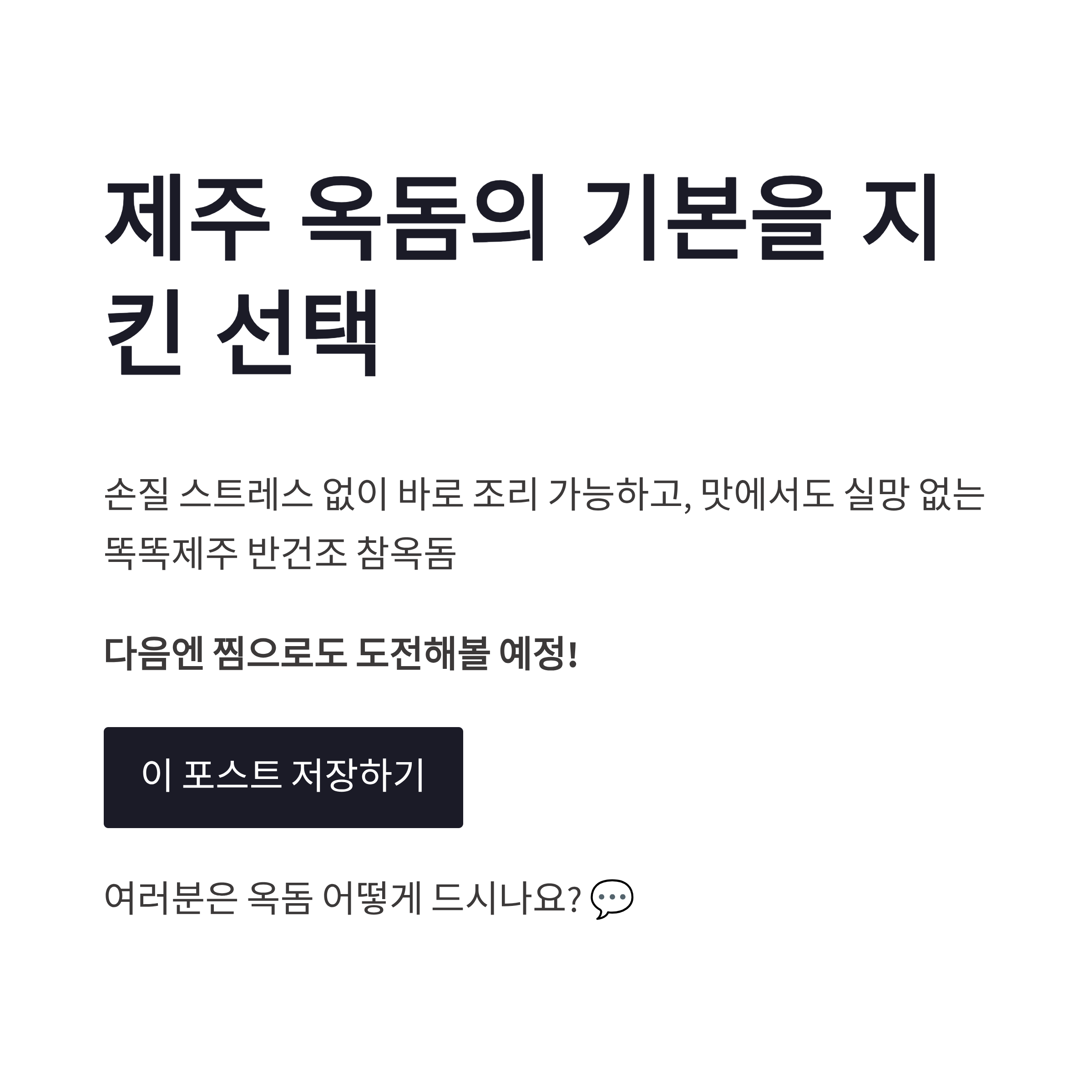 정리해보면 똑똑제주 반건조 참옥돔은 제주 옥돔의 기본을 제대로 지킨 제품이었구요. 손질 스트레스 없이 바로 조리 가능하고, 맛에서도 실망이 없었습니다. 부모님 식탁이나 아이 있는 집, 선물용으로도 무난한 선택 같더라구요. 매번 고기만 올리기 질릴 때 제주 옥돔 반건조 한 번 바꿔보는 것도 꽤 괜찮은 선택이었습니다. 다음엔 찜으로도 해볼까 고민 중인데, 다들 옥돔은 어떻게 드시나요 ㅎㅎ