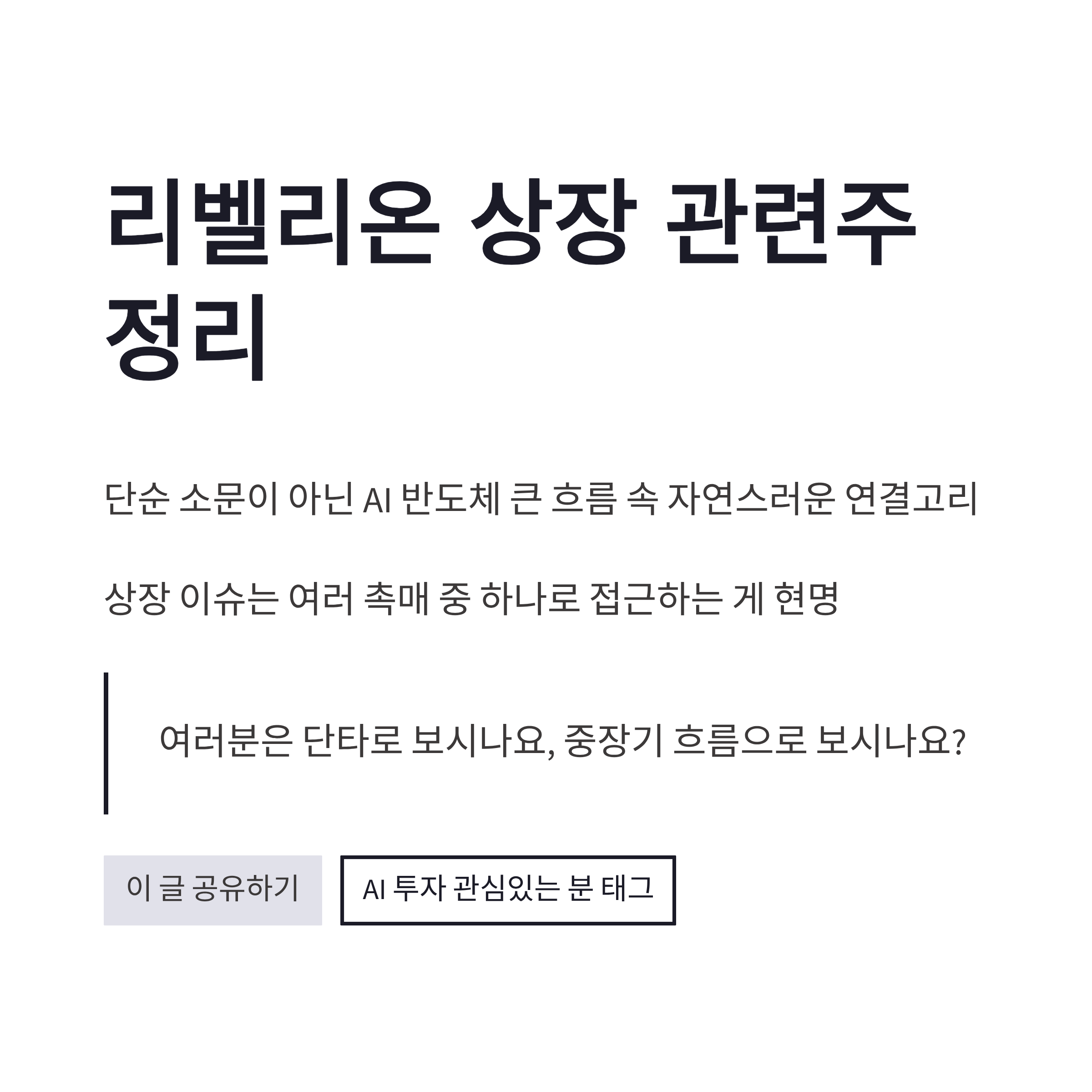 시장에서 말하는 리벨리온 상장 관련주는 크게 세 부류로 나뉘더라구요. 직접 지분, 협력사, 그리고 AI 반도체 밸류체인입니다.