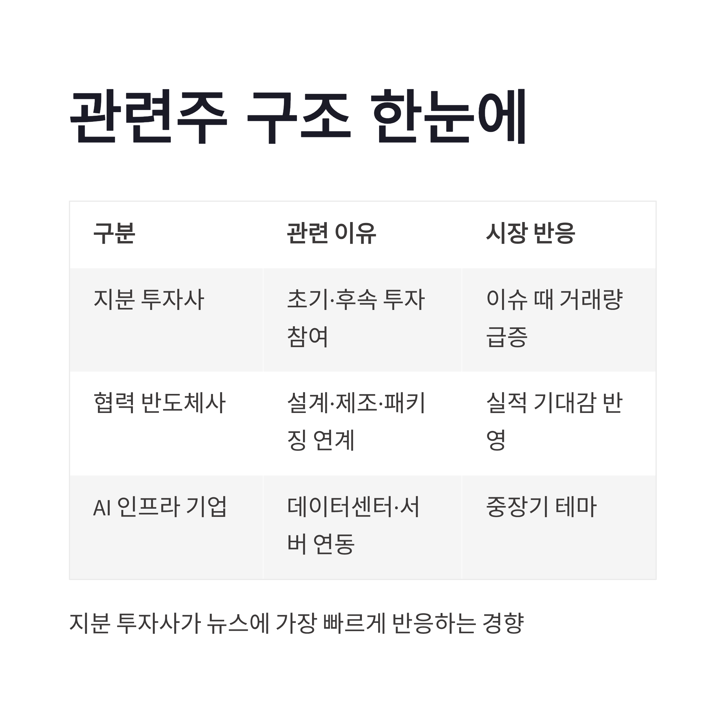 | 협력 반도체사 | 설계·제조·패키징 연계 | 실적 기대감 반영 |