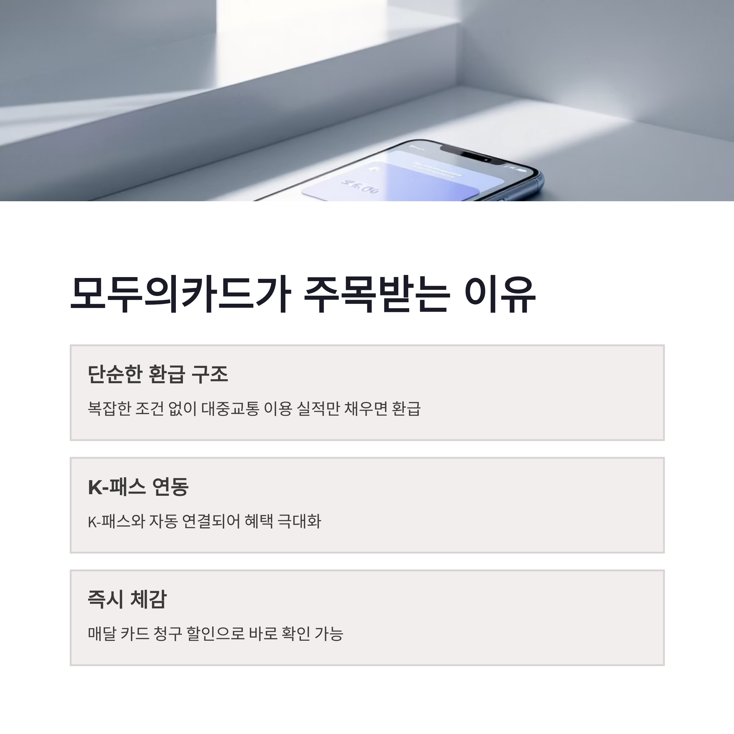 솔직히 예전엔 교통비를 따로 계산 안 했어요. 출퇴근 몇 번 왔다 갔다 하면 끝이니까요. 그런데 GTX 생기고, 광역버스 타고, 신분당선까지 엮이니까 한 달 카드값이 묘하게 올라가더라구요. 그때 알게 된 게 모두의카드 발급 신청방법이었어요. 이 카드가 요즘 검색되는 이유도 딱 이거 같아요. 교통비 환급 구조가 단순하다는 점. 복잡한 조건 없이 대중교통 이용 실적만 채우면 환급이 붙는 구조라서요. 저도 처음엔 “이게 진짜 되나?” 싶었는데, 막상 써보니 체감이 오더라구요. 특히 K-패스랑 연동되는 점이 핵심입니다.