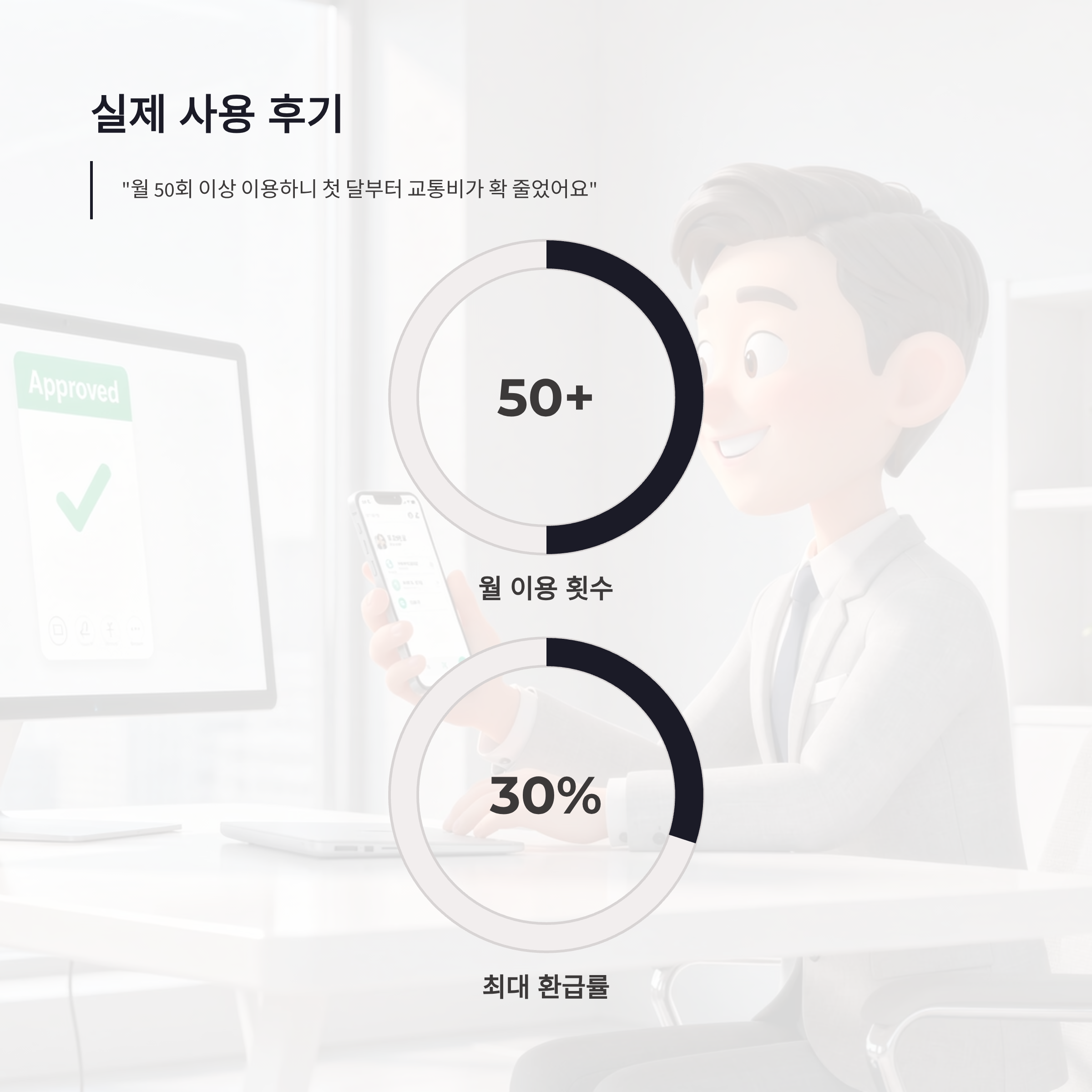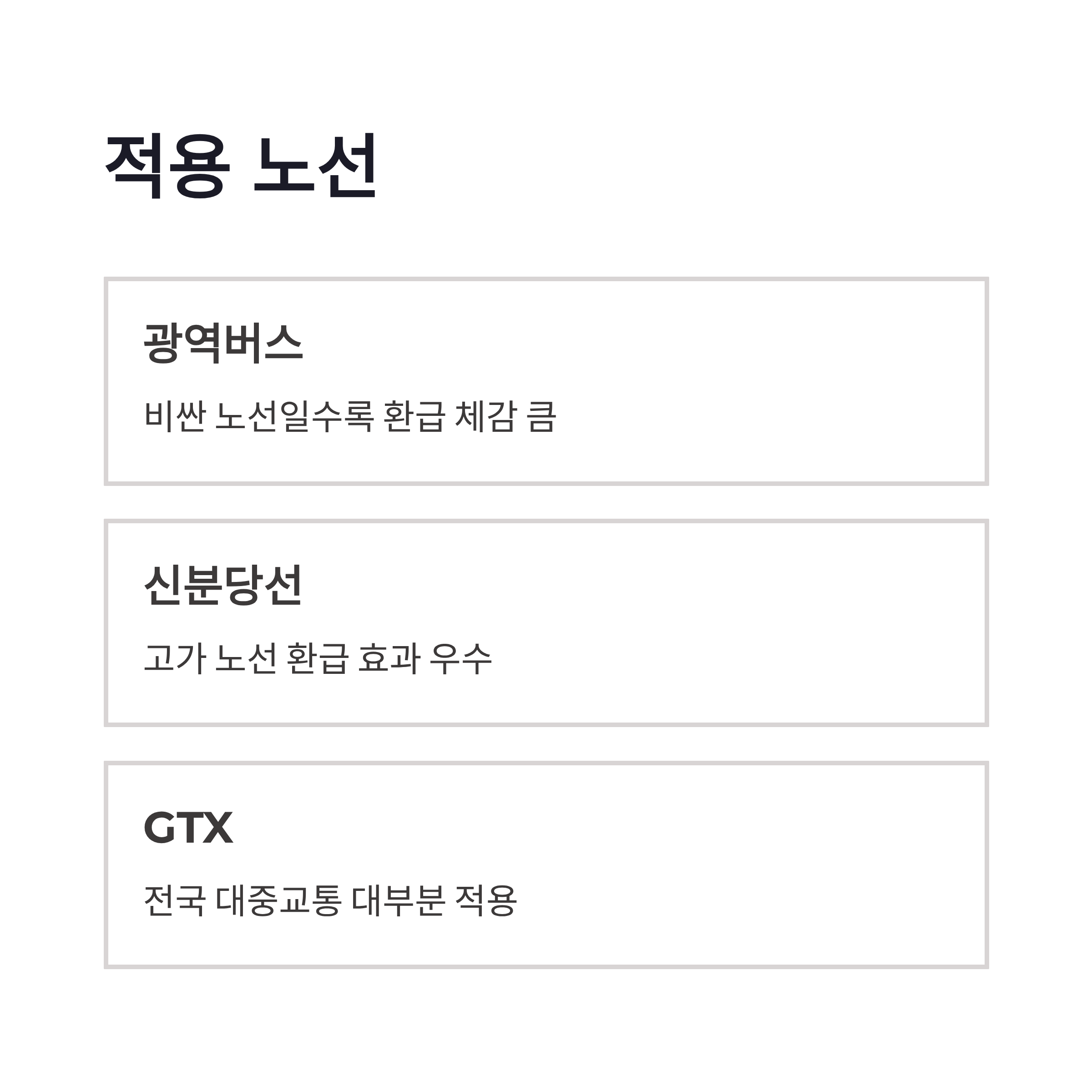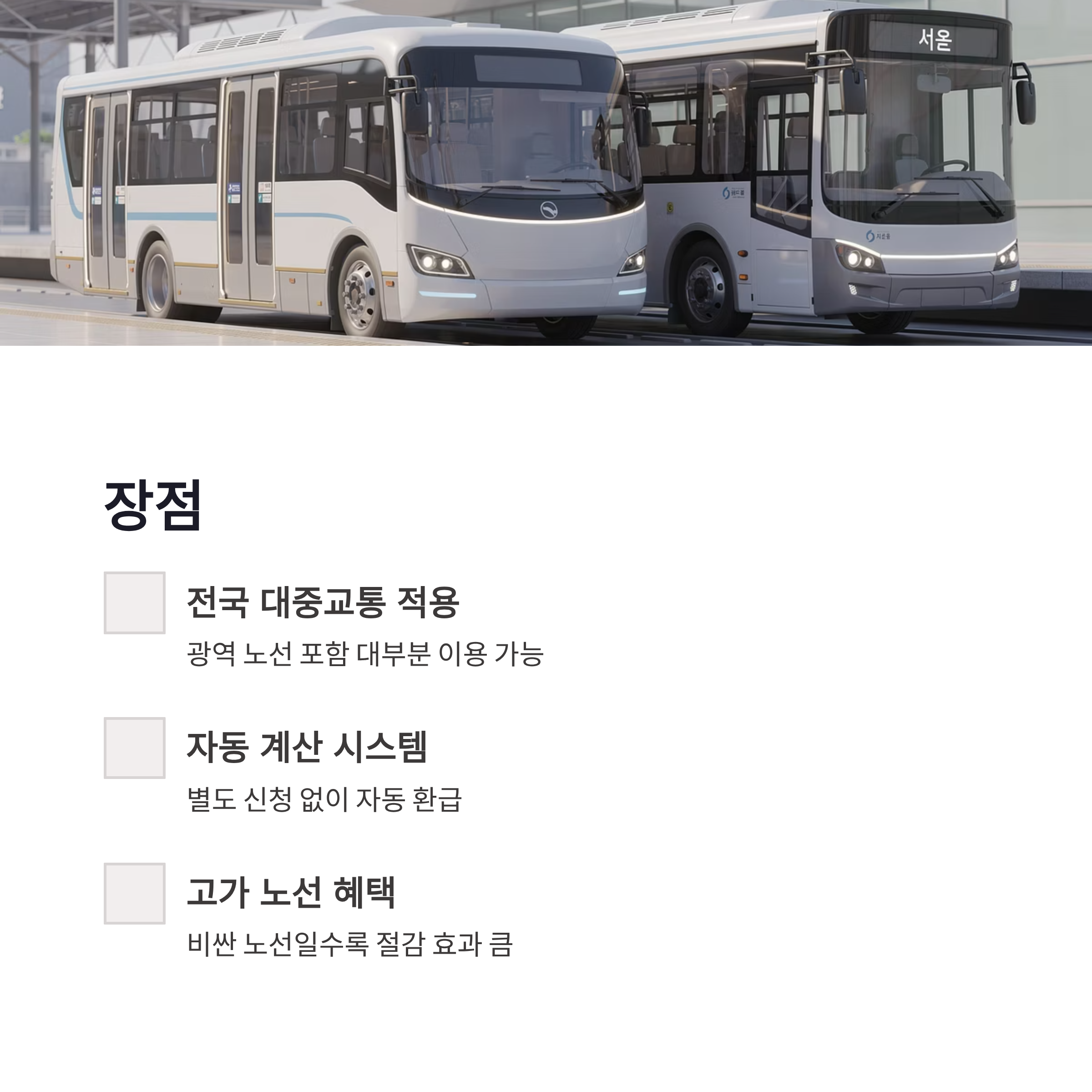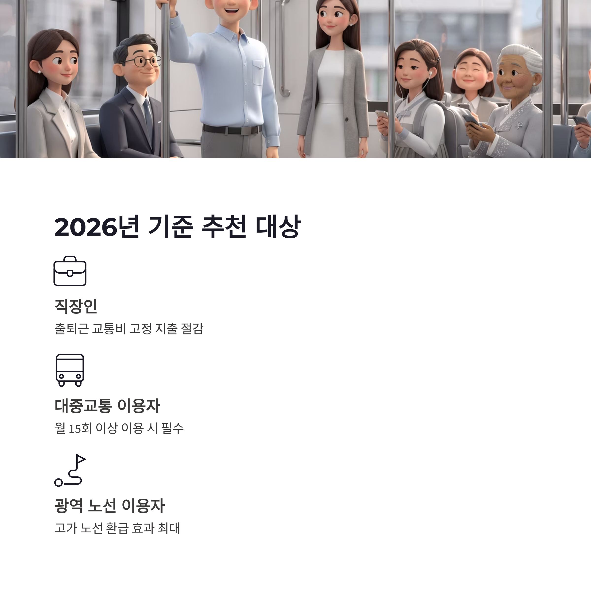 | 구분 | 월 교통 이용 횟수 | 환급 비율 | 체감 느낌 | | -- | ---------- | ----- | ------------ | | 일반 | 15회 미만 | 환급 없음 | 솔직히 아쉬움 | | 기본 | 15~44회 | 20% | 출퇴근러 체감 시작 | | 집중 | 45회 이상 | 30% | 진짜 돈 돌려받는 느낌 |