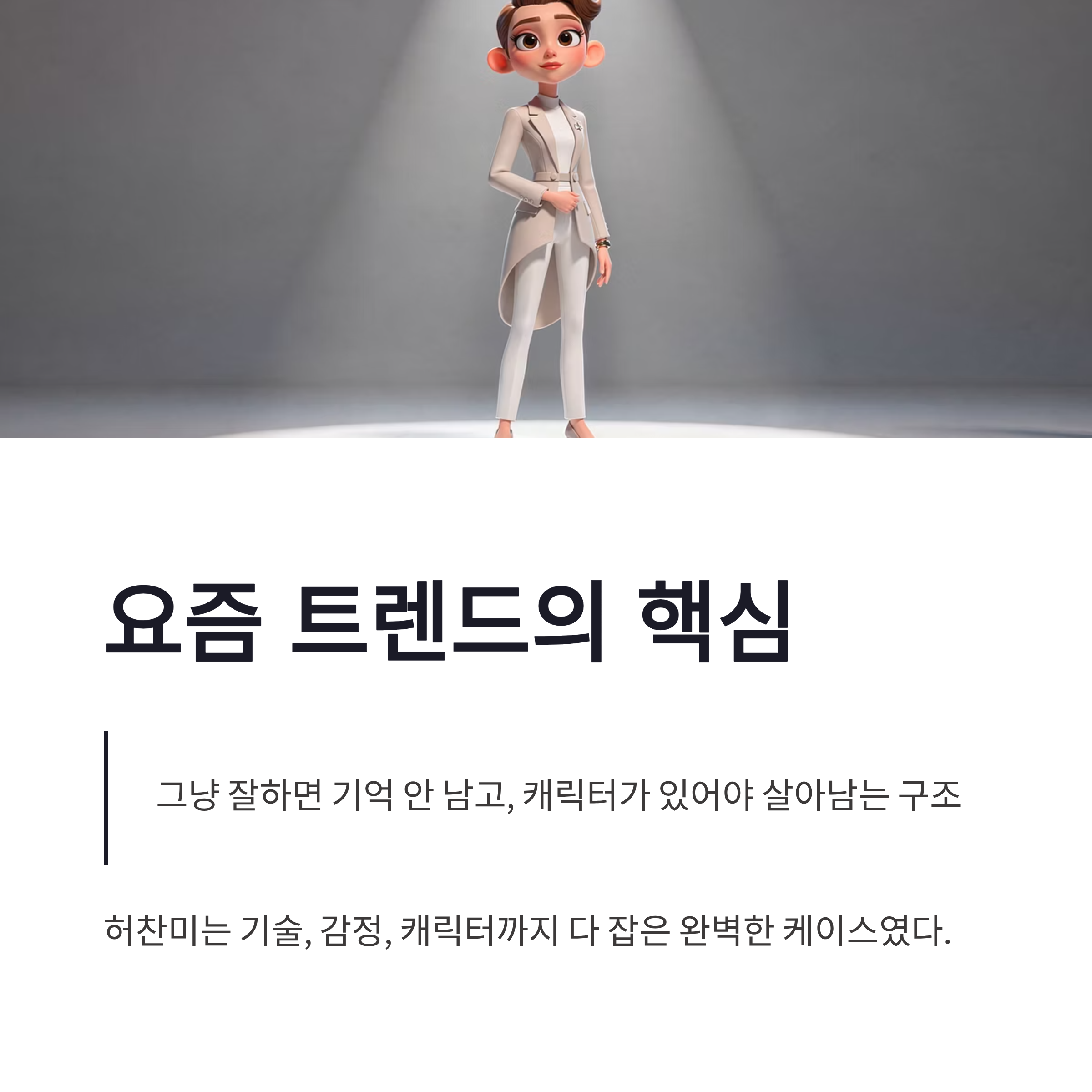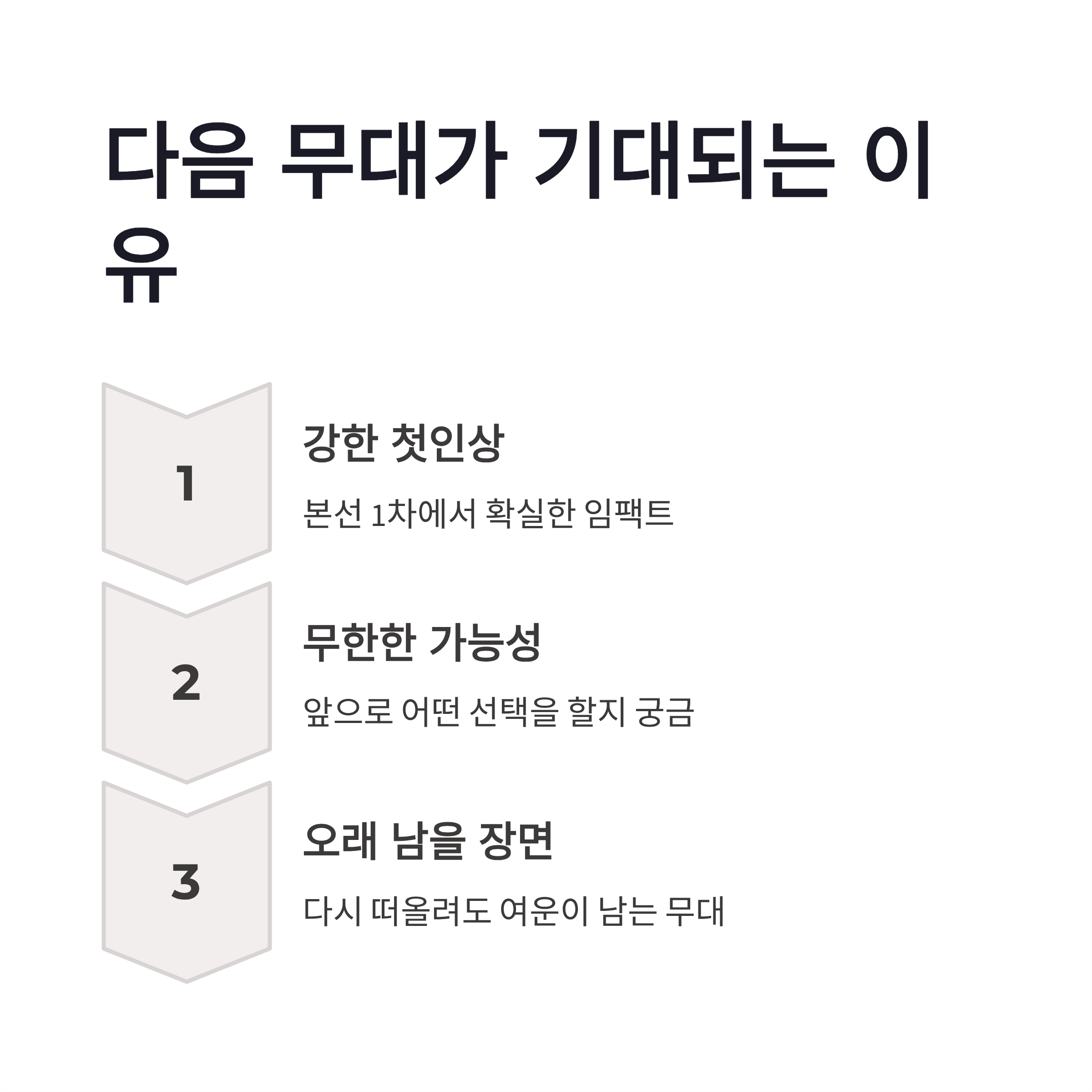 요즘 트렌드가 그렇잖아요. 그냥 잘하면 기억 안 남고, 캐릭터가 있어야 살아남는 구조. 그런 면에서 미스트롯4 허찬미 무대는 장점이 확실했어요. 장점부터 말하면, 드럼이라는 도구를 본인 서사로 만든 점, 무대 장악력, 감정선 유지. 반대로 아쉬운 점을 굳이 꼽자면, 드럼 퍼포먼스에 시선이 쏠려서 보컬 디테일을 더 듣고 싶었다는 정도? 근데 이건 단점이라기보단 욕심이죠 뭐 ㅠㅠ 그래도 미스트롯4 전체 흐름 안에서 보면, 허찬미는 확실히 다음 무대가 기대되는 참가자였어요.