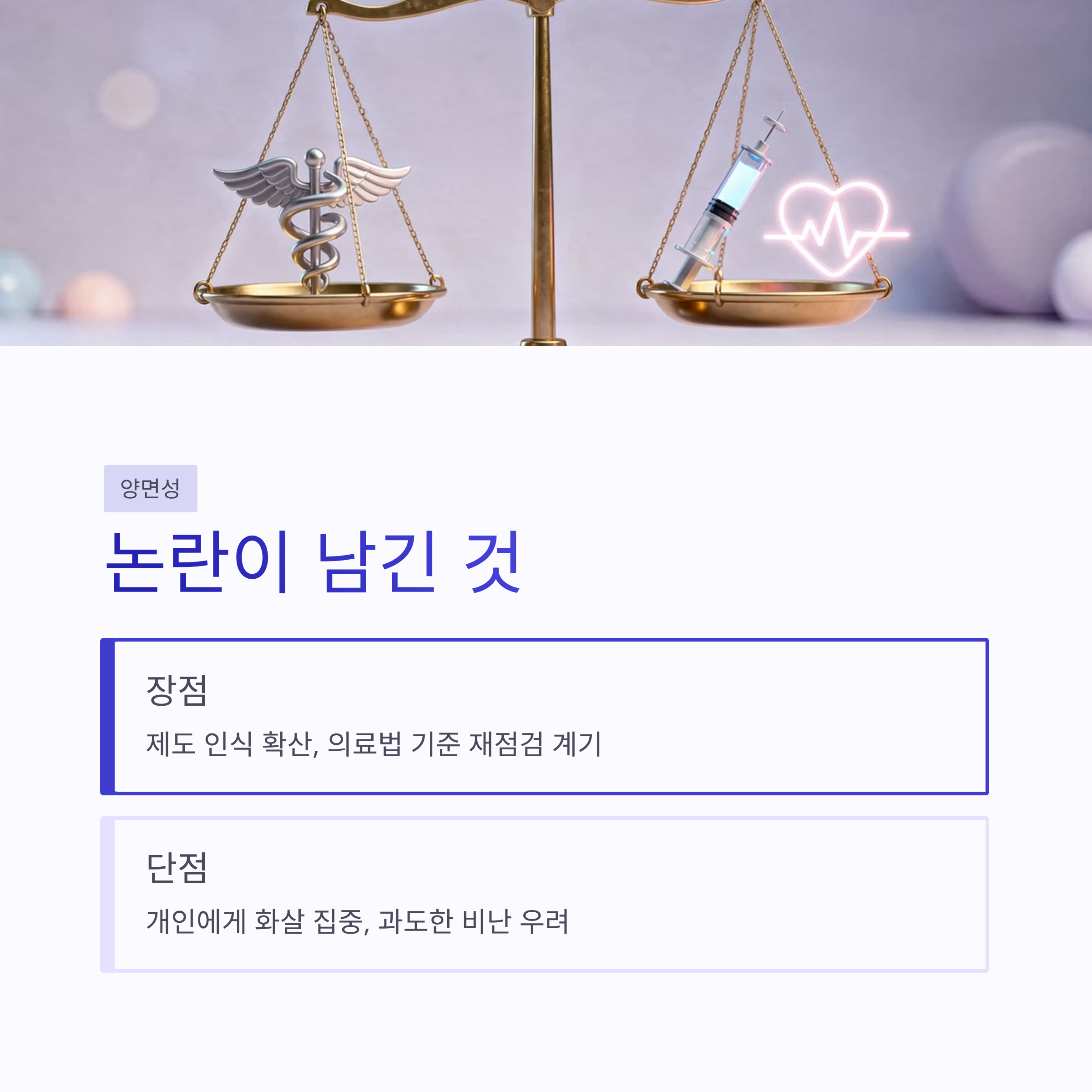 이 논란이 단순히 누구 잘못이냐를 넘어서 의미 있었던 건, 공인의 책임을 다시 생각하게 했다는 점 같아요. 박나래 산부인과 대리처방 논란을 보면서 느낀 건, 유명인은 사소한 행동도 사회적 기준이 된다는 거ㅠㅠ 장점도 많지만 부담도 엄청난 직업이죠. 동시에 의료기관도 “관행”이라는 이름으로 흐릿해진 기준을 다시 점검해야 할 시점 같구요. 장점이라면 제도 인식이 확 퍼졌다는 점, 단점은 개인에게 화살이 너무 집중됐다는 점? 이런 균형이 참 어렵더라구요.