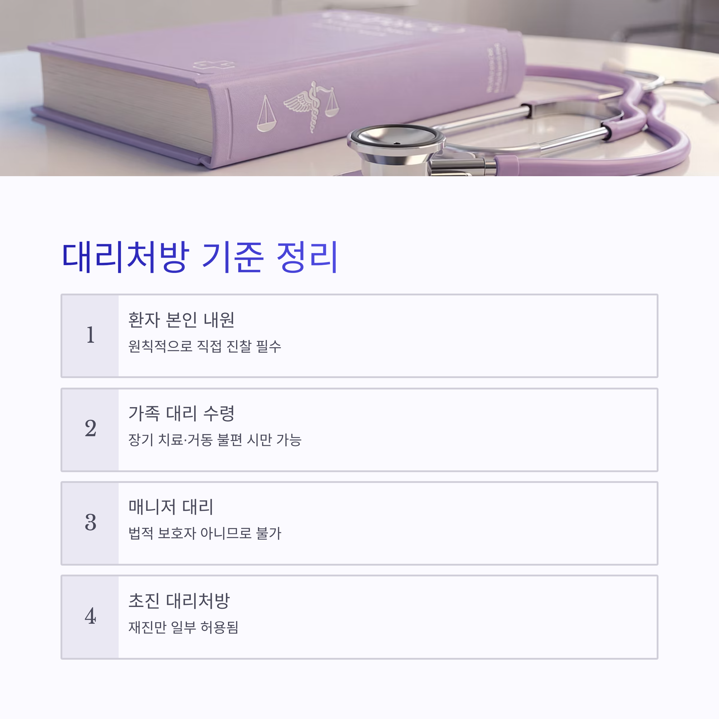 | 환자 본인 내원 | O | 원칙, 직접 진찰 필수 |