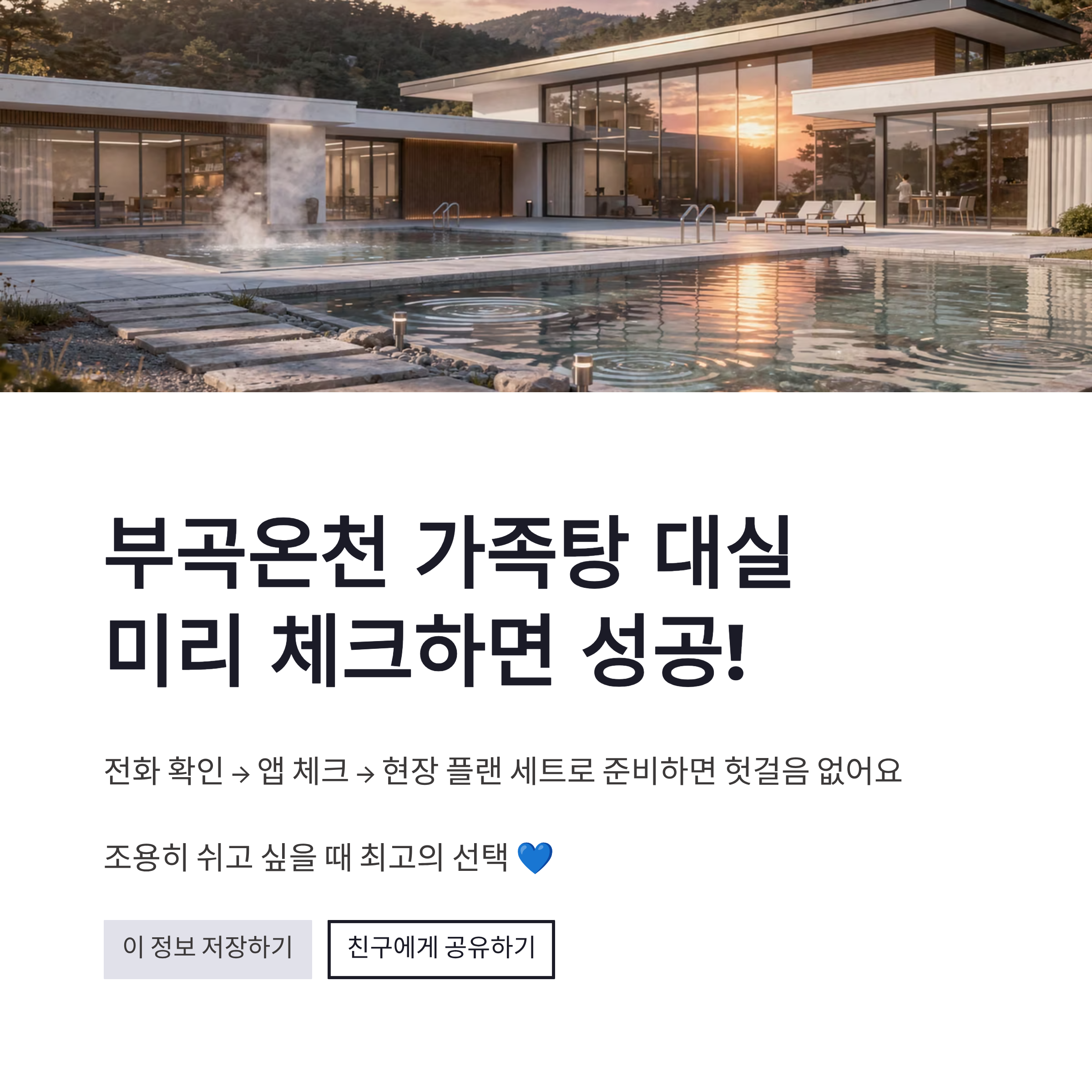 정리해보면 부곡온천 가족탕 대실은 무작정 가기보단, 전화 → 앱 확인 → 현장 플랜까지 세트로 생각하는 게 마음 편했어요. 저처럼 헛걸음 안 하려면 미리 체크는 필수! 개인적으로는 조용히 쉬고 싶을 때 이만한 선택도 드물더라구요. 다음에도 부곡 쪽 온천 갈 땐 저는 또 대실로 갈 듯요 ㅎㅎ