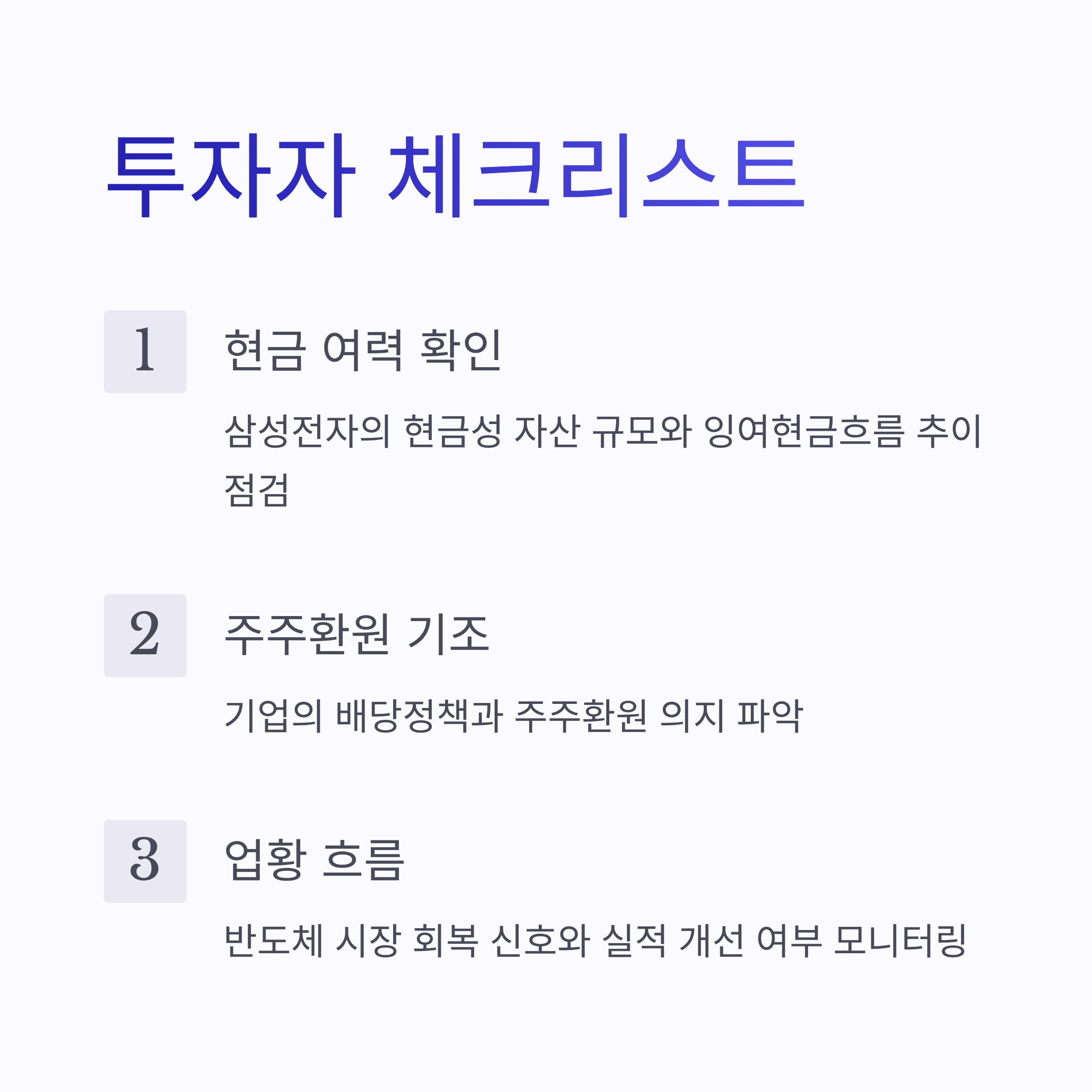 삼성전자 특별배당금 2026의 장점은 뭐니 뭐니 해도 현금 흐름의 안정감이에요. 주가가 횡보해도 배당으로 버티는 느낌, 이거 무시 못 하죠. 특히 예금보다 나을 수도 있다는 생각에 관심 갖는 분들 많구요. 반대로 단점도 있습니다. 특별배당은 말 그대로 ‘특별’이라 매년 나온다는 보장이 없다는 점, 그리고 배당 기대감이 선반영되면 주가가 오히려 눌릴 수도 있다는 부분이에요. 저도 예전에 이 부분에서 살짝 멘붕 온 적 있었거든요 ㅠㅠ 그래도 2026년은 AI·메모리 쪽 투자 사이클이 다시 도는 시기라, 특별배당 가능성 자체는 이전보다 높아졌다는 평가가 많습니다.