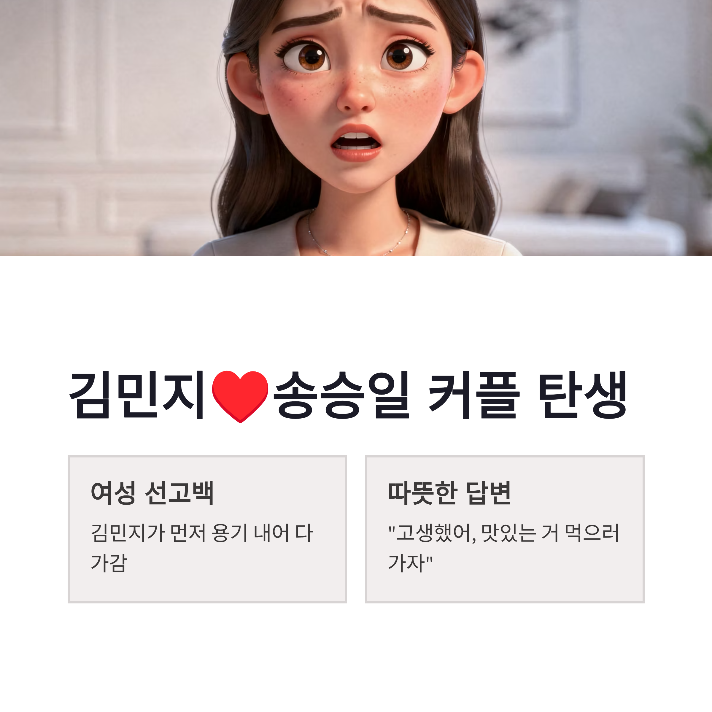 | 김민지 ♥ 송승일 | 여성 선고백 | “현실 연애 같다” |