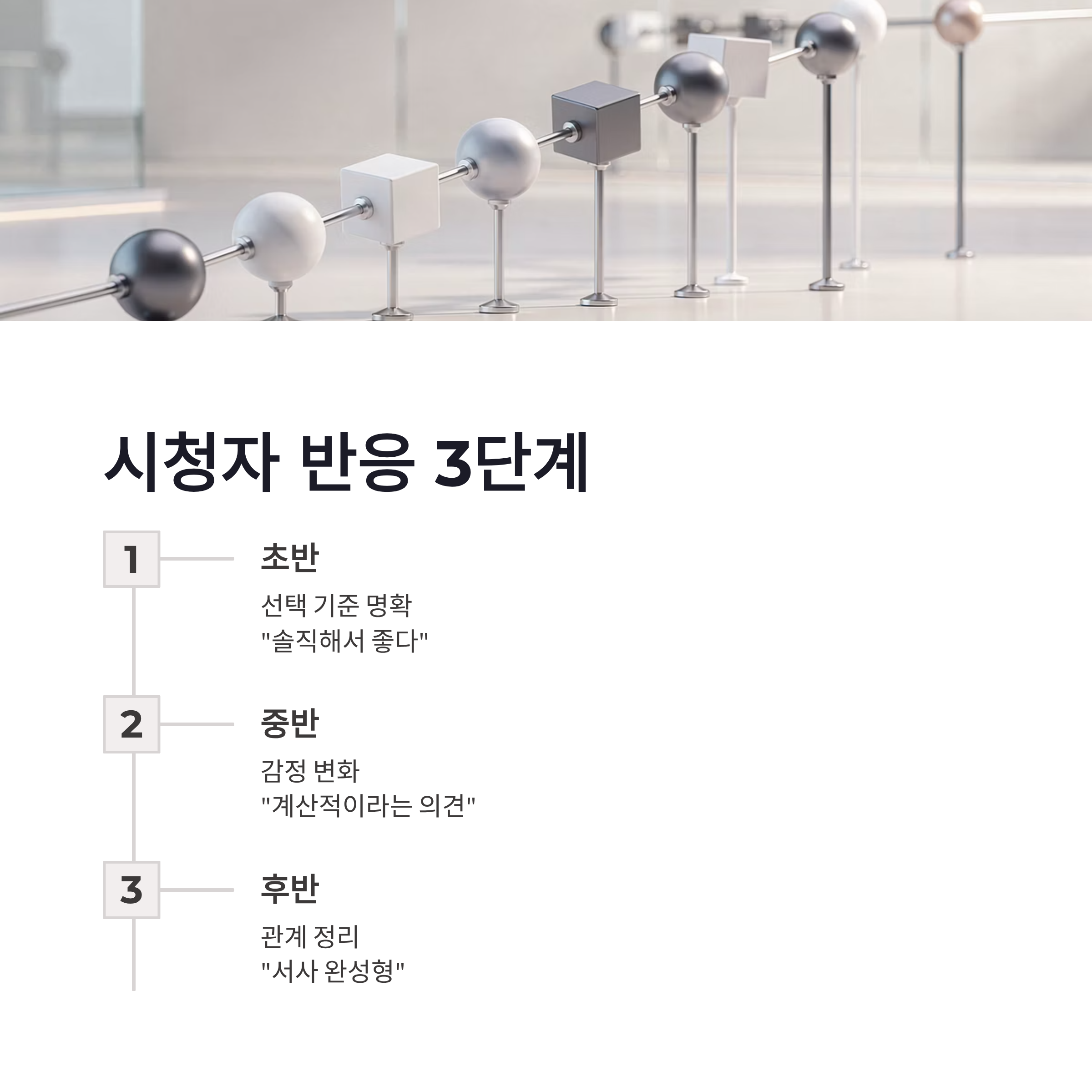 | 구분 | 주요 포인트 | 시청자 반응 | | -- | -------- | --------- | | 초반 | 선택 기준 명확 | 솔직해서 좋다 | | 중반 | 감정 변화 | 계산적이라는 의견 | | 후반 | 관계 정리 | 서사 완성형 |