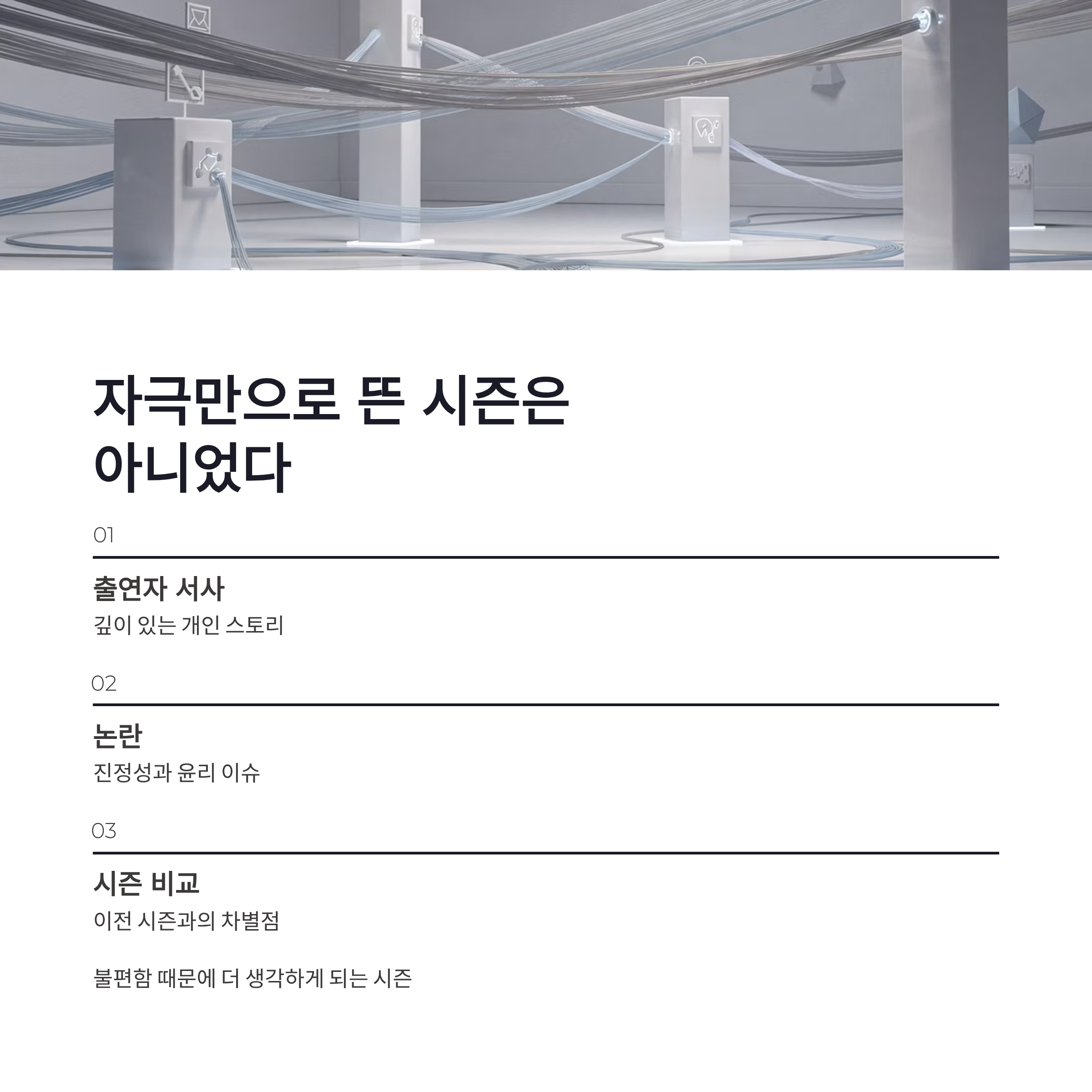 보면서 느낀 건, 솔로지옥5 화제성의 중심축이 명확하다는 점이었어요. 일부러든 자연스럽든, 화제가 안 될 수 없는 구조였달까요.