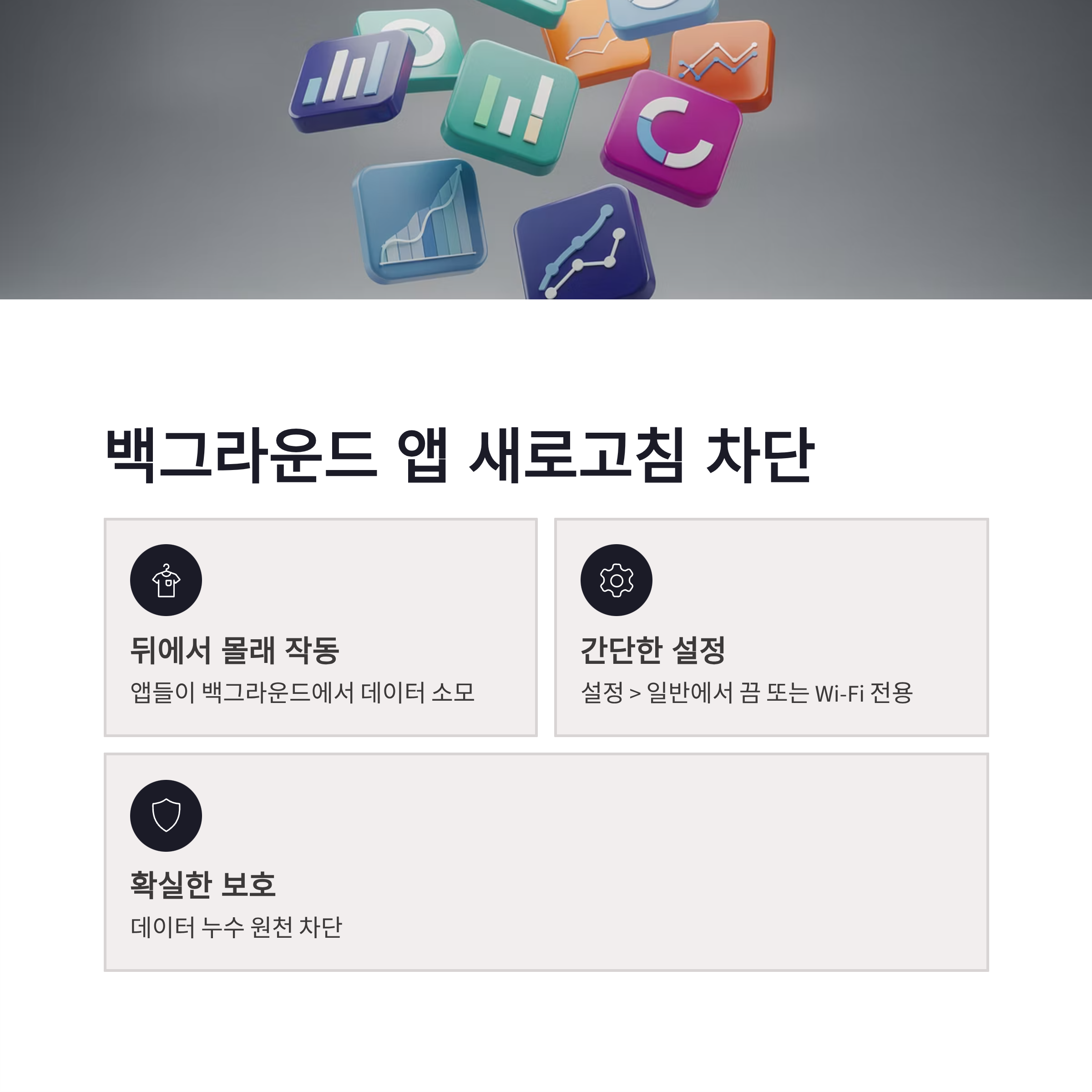 | 백그라운드 앱 새로 고침 | 설정 > 일반 > 백그라운드 앱 새로 고침 | 끔 또는 Wi-Fi | 앱이 뒤에서 데이터 먹는 걸 막음 |
