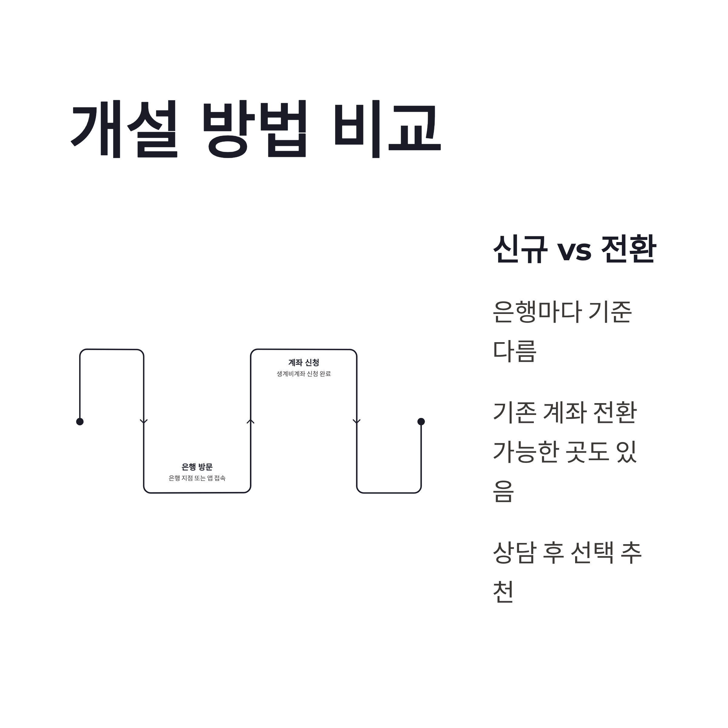연관해서 많이 헷갈리는 게, 기존 통장을 전환하느냐 인데요. 이건 은행마다 조금 달랐습니다. 신규 개설만 가능한 곳도 있고, 기존 계좌를 생계비계좌로 변경해주는 곳도 있었어요. 상담 한 번은 꼭 해보는 게 좋겠더라구요.