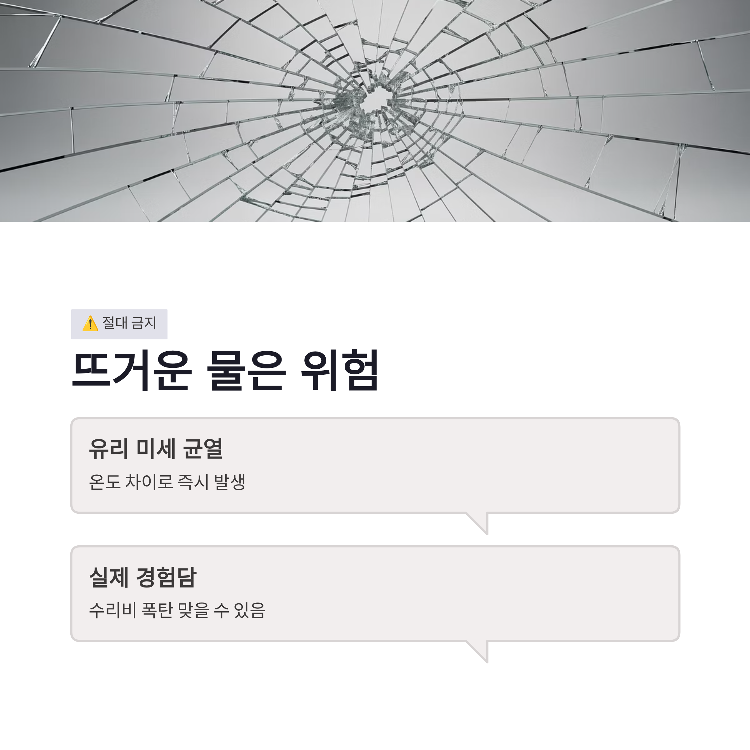 | 뜨거운 물 | 즉시 | ❌ | 유리 파손 위험 |