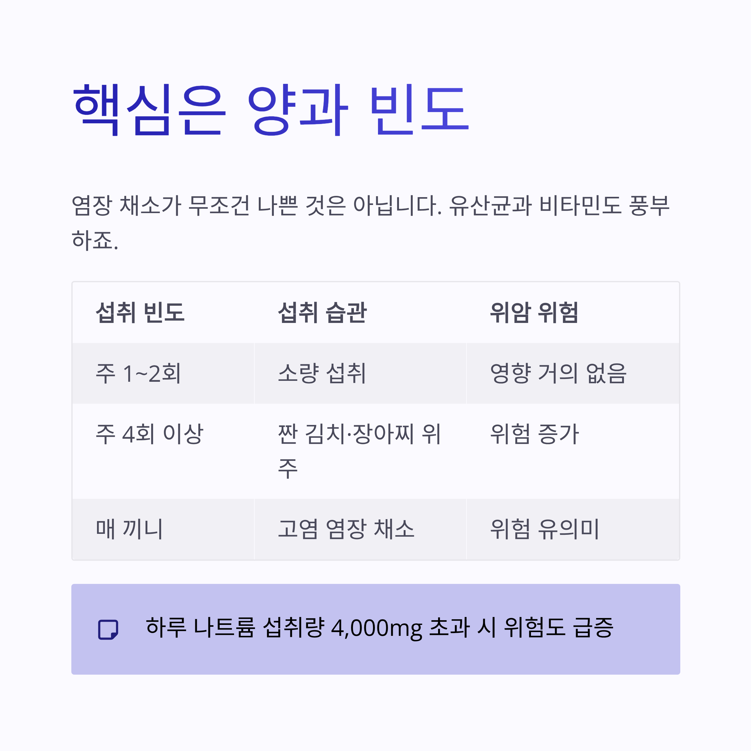 | 주 4회 이상 | 짠 김치·장아찌 위주 | 위험 증가 |