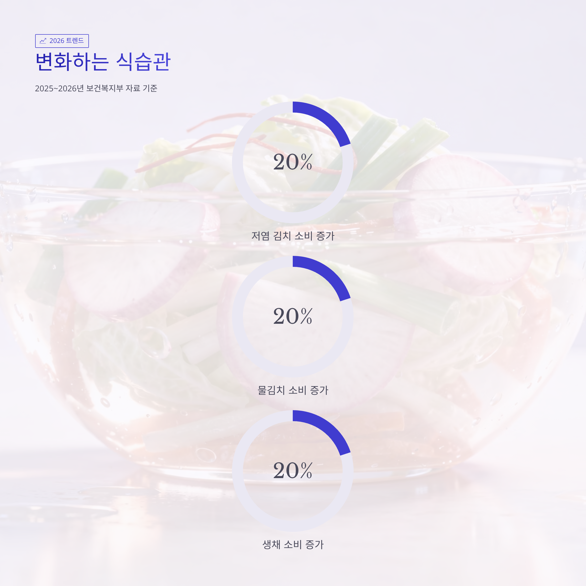 요즘은 확실히 흐름이 바뀌는 게 느껴져요. 2025~2026년 보건복지부 자료 보면 저염 김치, 물김치, 생채 소비가 20% 이상 늘었다고 하더라구요. 장점은 위 부담이 줄고, 단점은… 솔직히 처음엔 맛이 좀 밍밍해요 ㅋㅋ 그래도 적응되니까 괜찮더라구요. 염장 채소 위암 위험을 줄이려면 완전 끊기보단, 저염화가 현실적인 선택 같았어요.