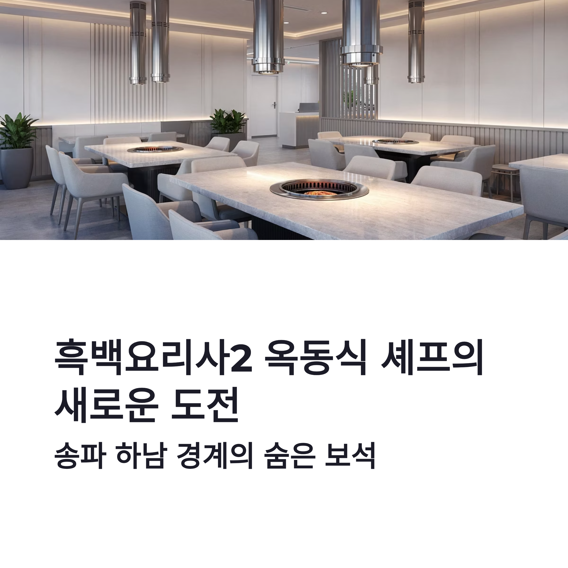 안녕하세요. 오늘은 진짜… 미식 좋아하시는 분들이라면 심장 쿵 할 소식이에요. 넷플릭스 흑백요리사2 보신 분들은 아실 거예요. 심사위원들 감탄 터졌던 그 ‘뉴욕 돼지곰탕’의 주인공, 옥동식 셰프가 새로 연 공간이 바로 옥동식 그릴이에요. 송파랑 하남 경계라 위치가 애매할 줄 알았는데, 막상 가보니 주차 동선도 괜찮고 내부가 꽤 널찍하더라구요. 분위기는 정육식당인데, 그냥 고기집 느낌이 아니라 BBQ 다이닝 쪽에 더 가까워요. 숯향 은근히 깔리고, 고기 굽는 소리 들리는데… 아 이건 반칙이죠 ㅋㅋ 개인적으로 좋았던 건 마무리가 곰탕이라는 점. 고기 먹고 나면 느끼해서 물 찾게 되잖아요? 여긴 그 흐름을 정확히 아는 느낌이었어요. 옥동식 그릴 메뉴 가격도 생각보다 과하게 튀지 않아서 살짝 놀랐구요.