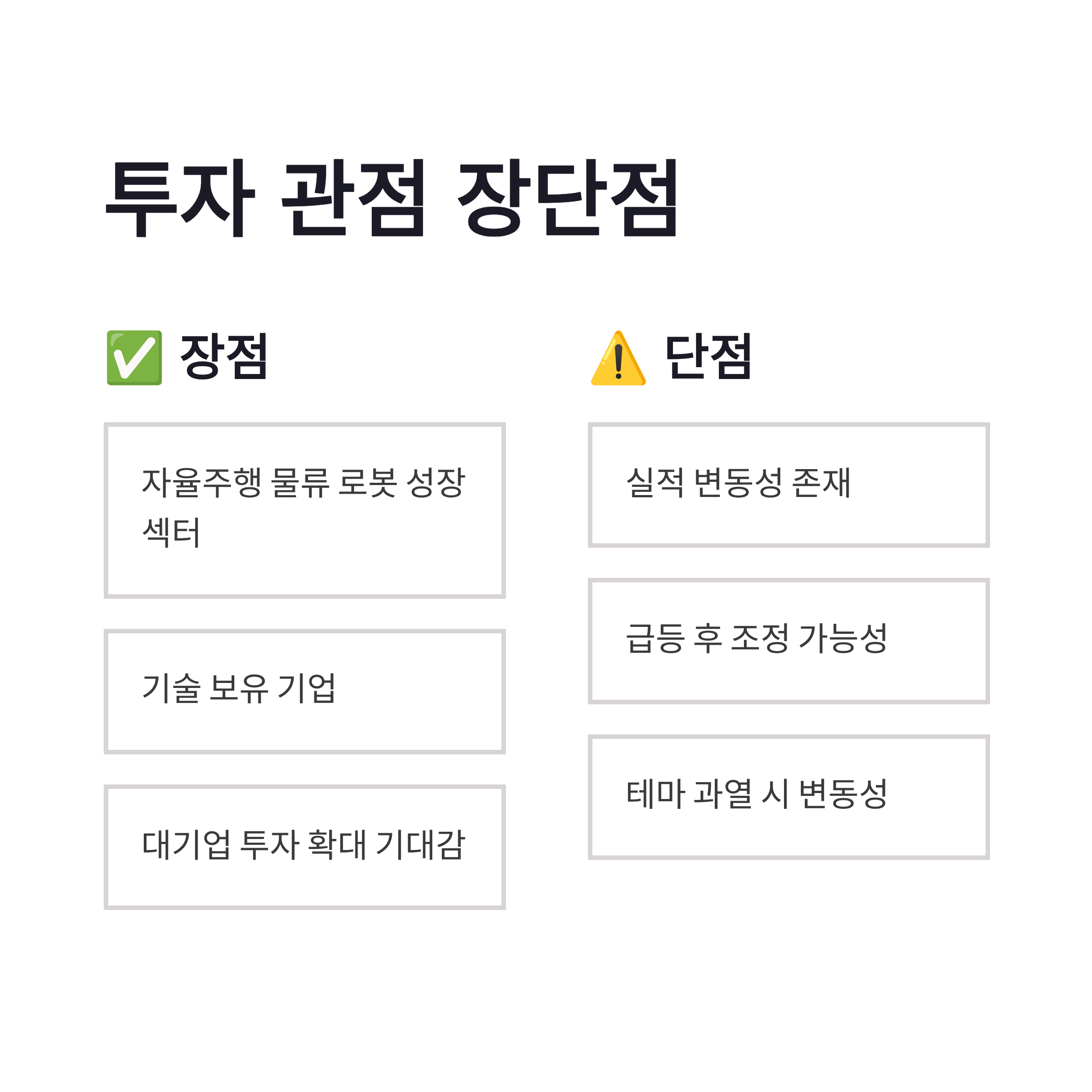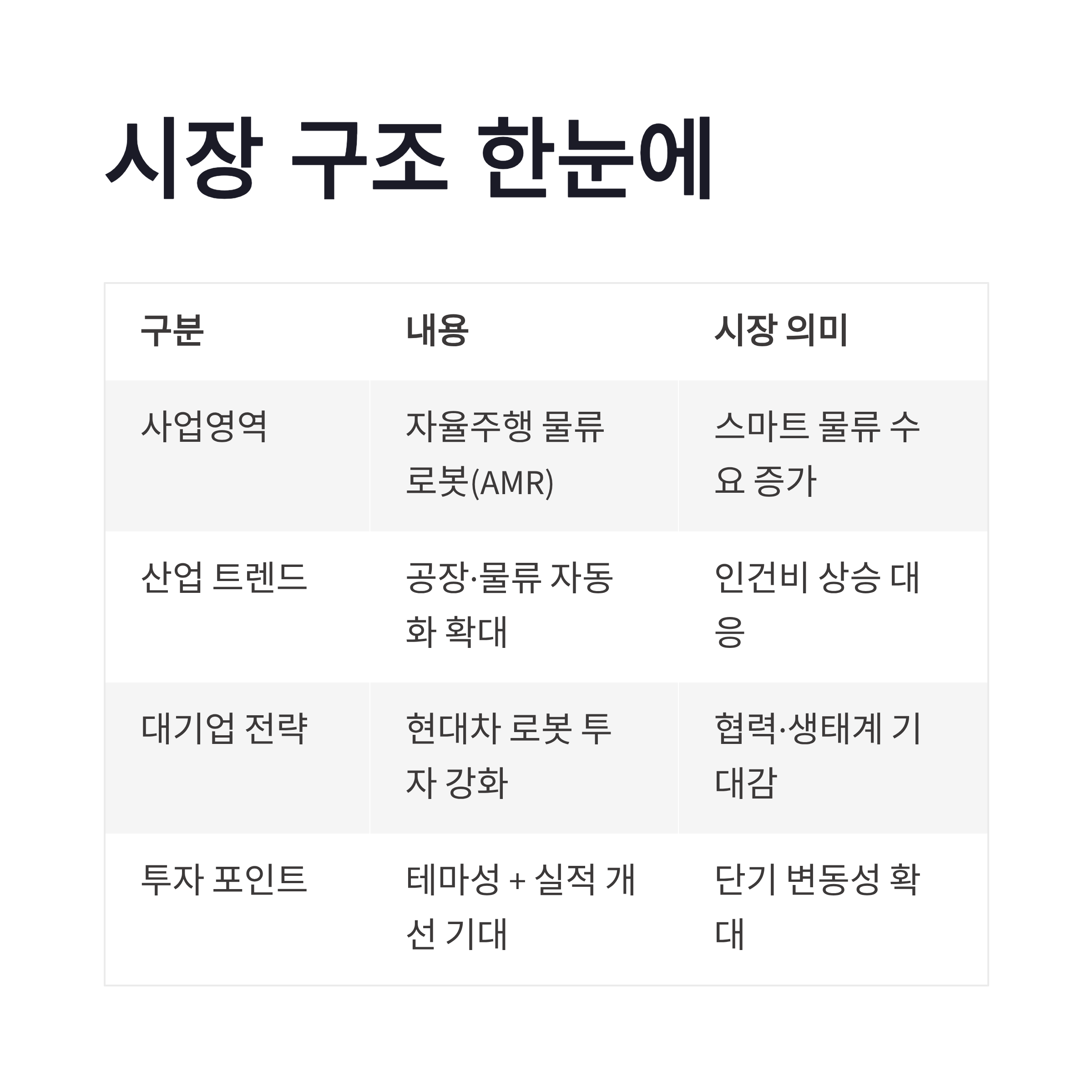 | 산업 트렌드 | 공장·물류 자동화 확대 | 인건비 상승 대응 |
