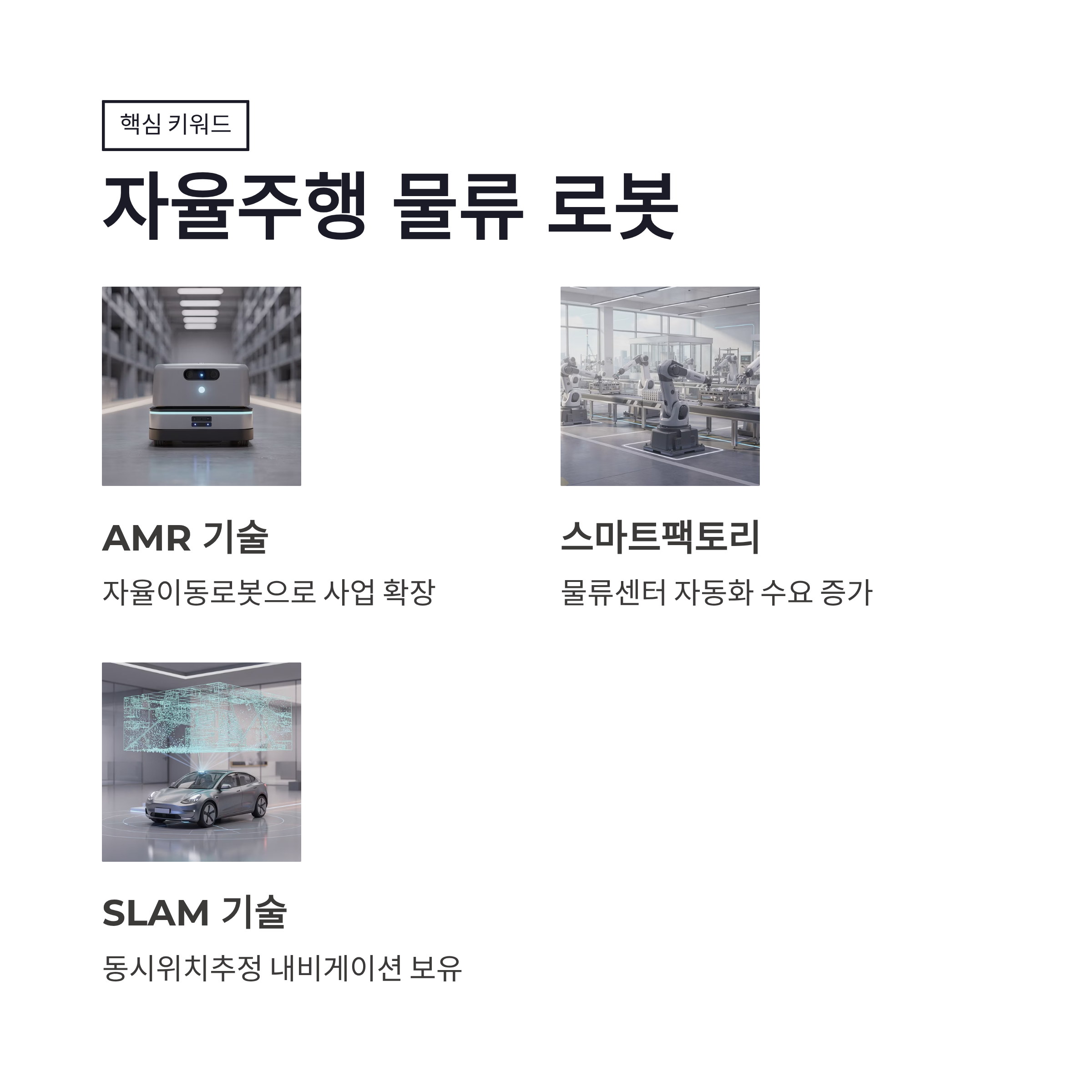 | 사업영역 | 자율주행 물류 로봇(AMR) | 스마트 물류 수요 증가 |