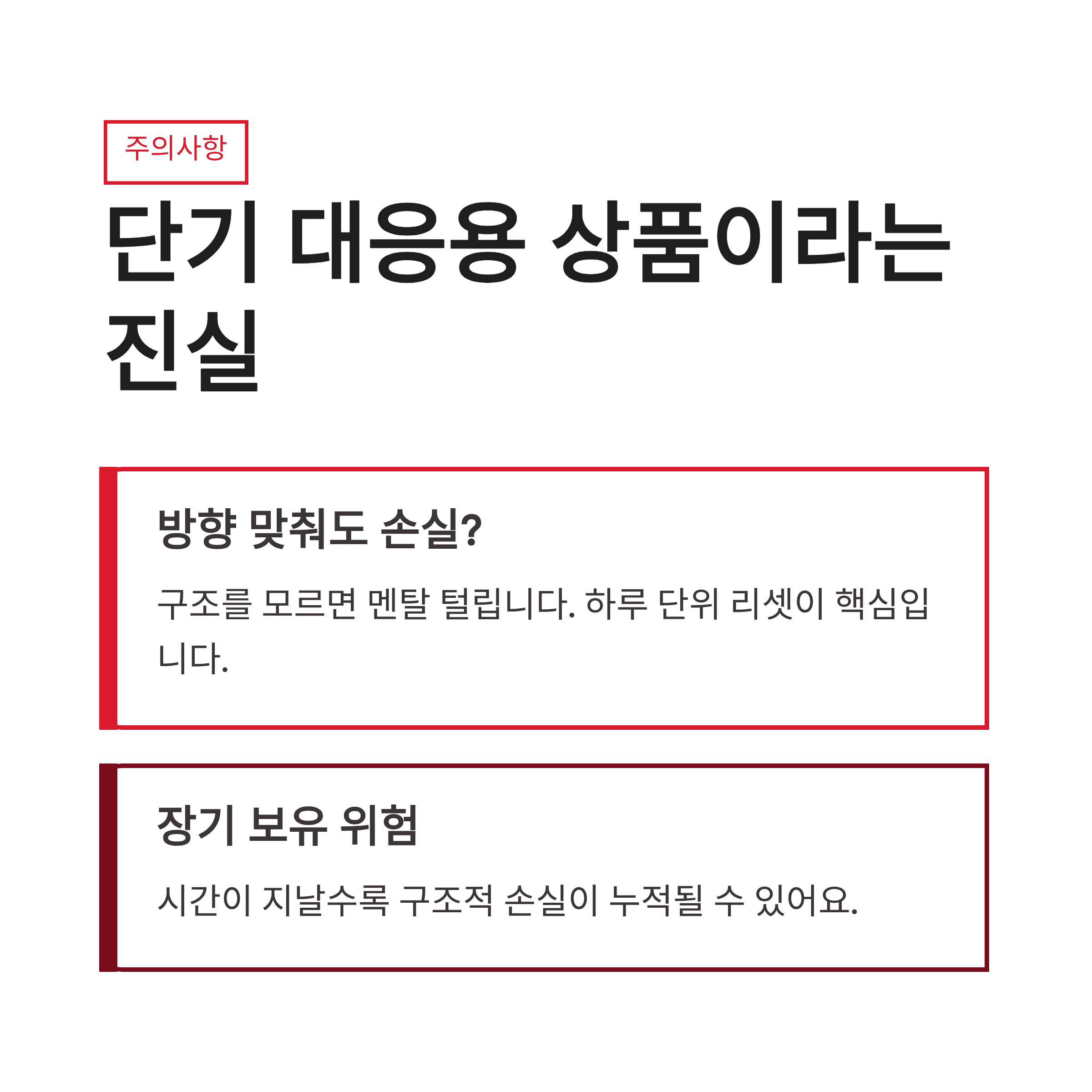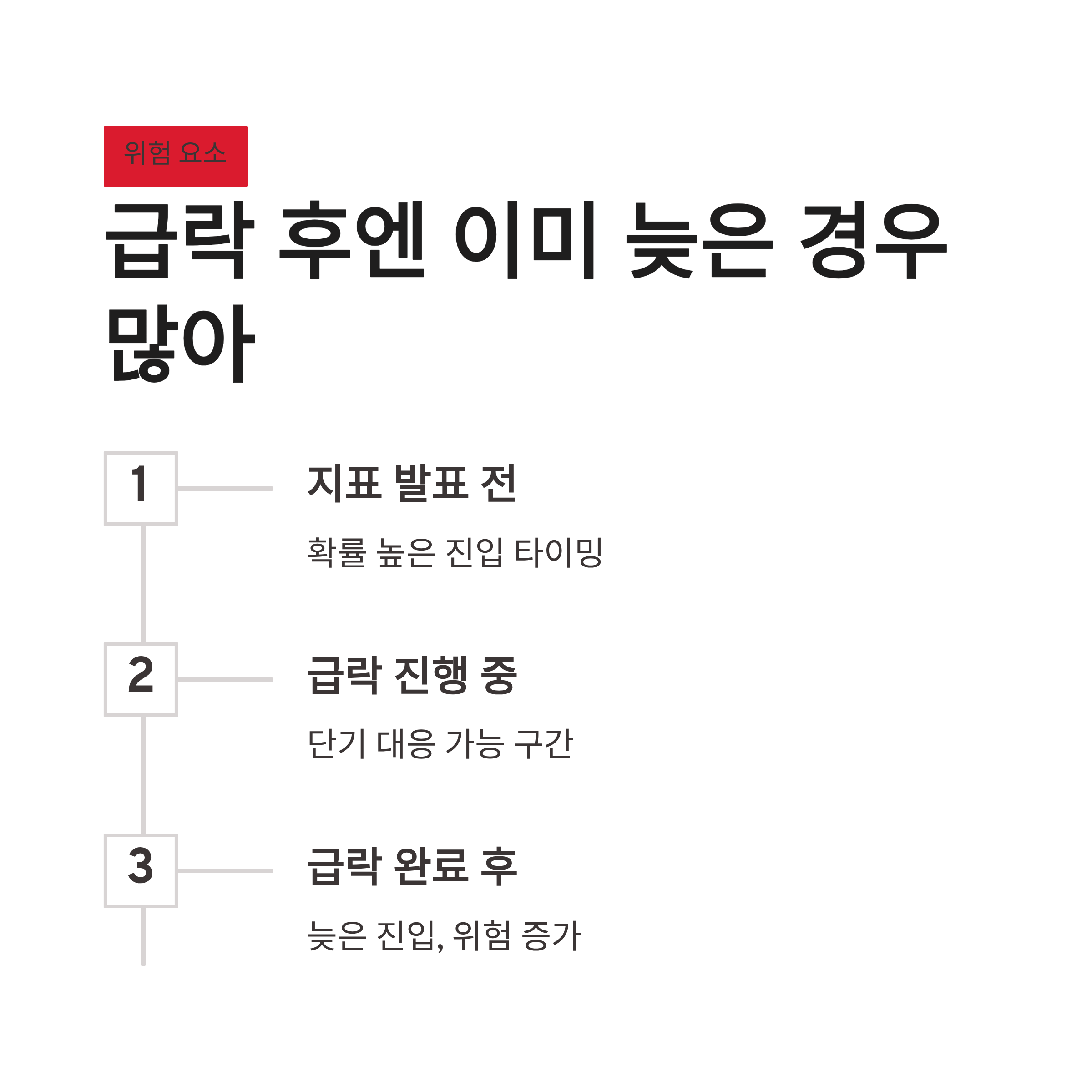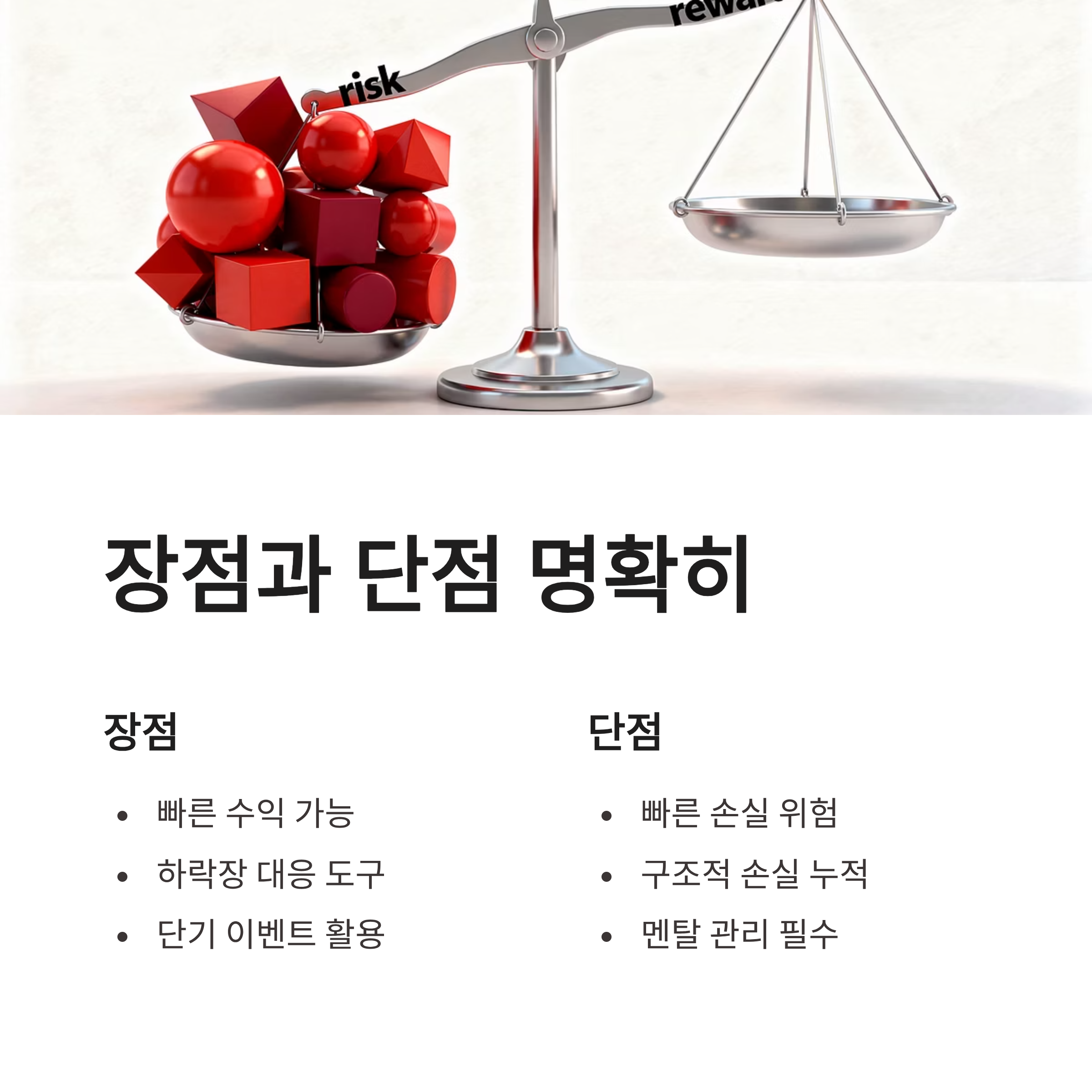 많이들 묻는 게 이거예요. “지금 사도 돼요?” 근데 솔직히 인버스 곱버스는 타이밍이 전부입니다. 개인적으로 느낀 기준은 이랬어요. 이미 급락한 뒤엔 늦은 경우가 많고, 지표·이벤트 전 단기 대응이 그나마 확률이 있었어요. 예를 들면 미국 FOMC 발표 전후, 옵션 만기일, 대형 악재 뉴스 직후 같은 타이밍이요. 다만 곱버스는 하루만 지나도 구조적 손실이 누적될 수 있어서… 장 끝나기 전에 정리하는 게 마음 편했구요. 장점은 빠른 수익, 단점은 빠른 손실 ㅋㅋ 이게 전부입니다.