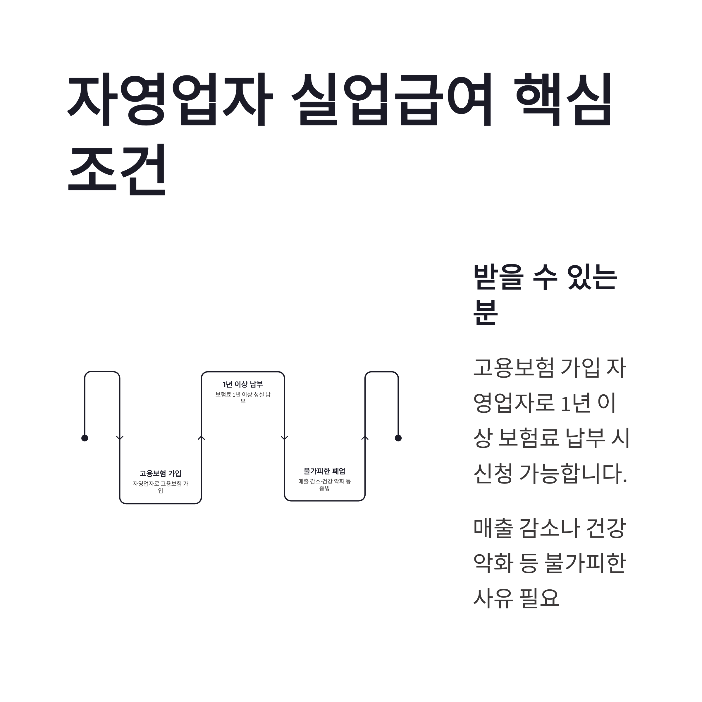 많이들 모르는데, 자영업자도 고용보험에 가입돼 있으면 폐업 후 실업급여를 받을 수 있습니다. 이게 바로 자영업자 폐업 지원금의 핵심 중 하나예요. 조건은 단순합니다. 고용보험 가입 + 1년 이상 보험료 납부. 그리고 아무 이유 없는 폐업이 아니라, 매출 감소나 적자 지속 같은 불가피한 사유가 있어야 하구요.