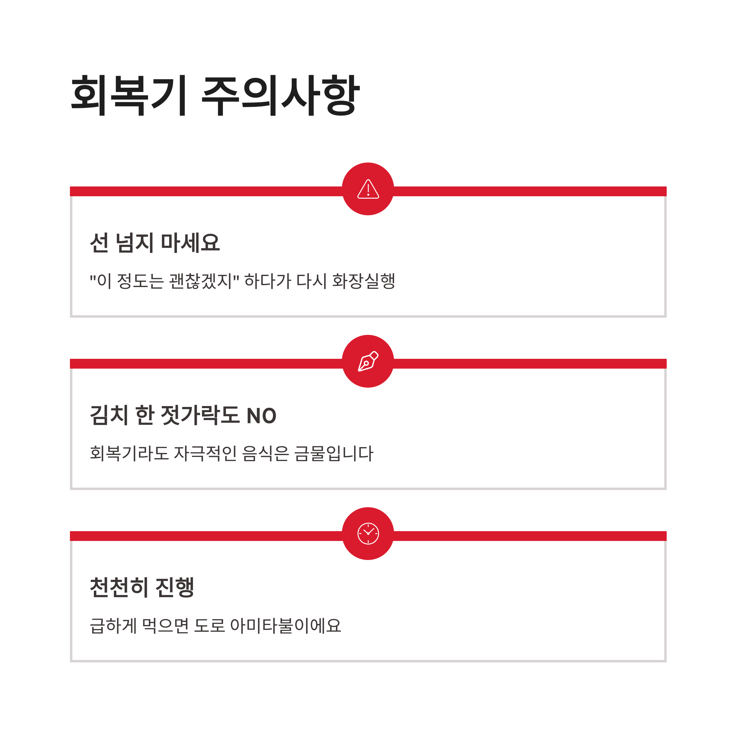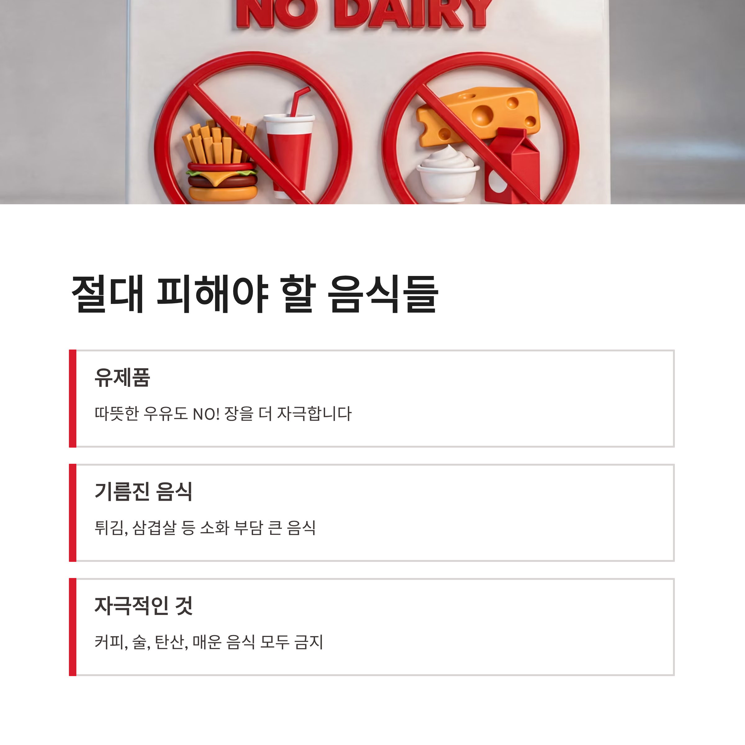 | 회복기 | 부드러운 밥 | 술, 탄산 |