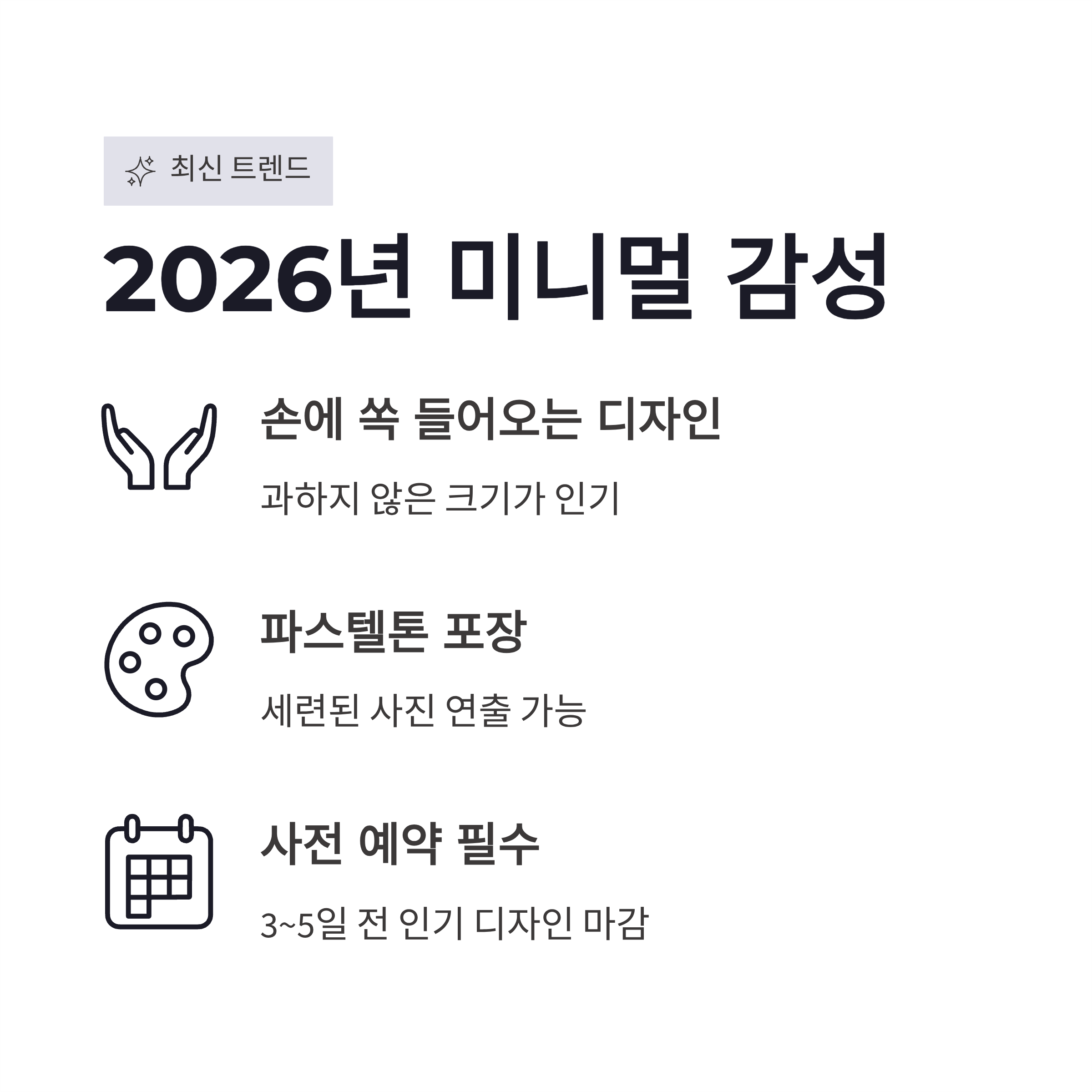 2026년 졸업 시즌은 ‘미니멀 감성’이 확실히 강세였어요. 과하게 크기보단 손에 쏙 들어오는 디자인이 많았고, 파스텔톤 포장이 인기더라구요.