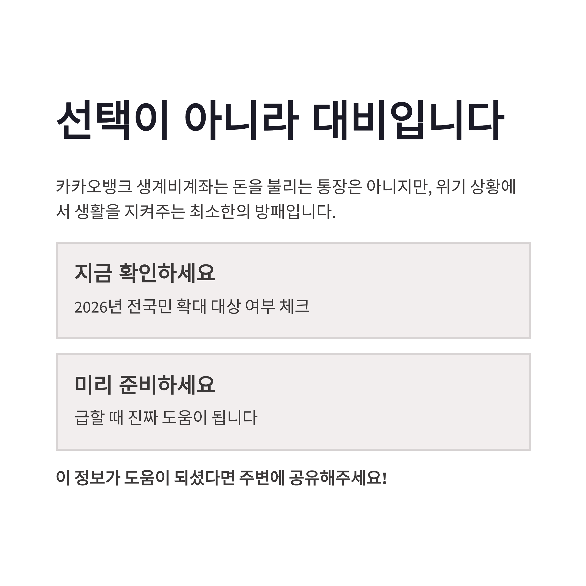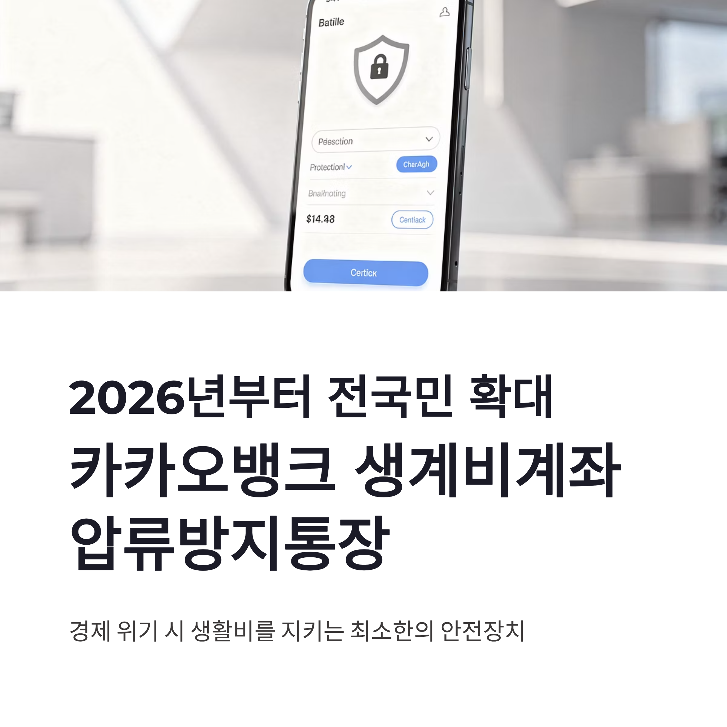 #카카오뱅크생계비계좌 #압류방지통장 #생계비계좌 #카카오압류방지통장 #2026생계비계좌 #전국민생계비계좌 #경제위기대비 #생활비보호 #모바일통장개설 #카카오뱅크통장 #압류걱정없는계좌 #생계지원통장 #금융안전장치 #생활비계좌 #서민금융