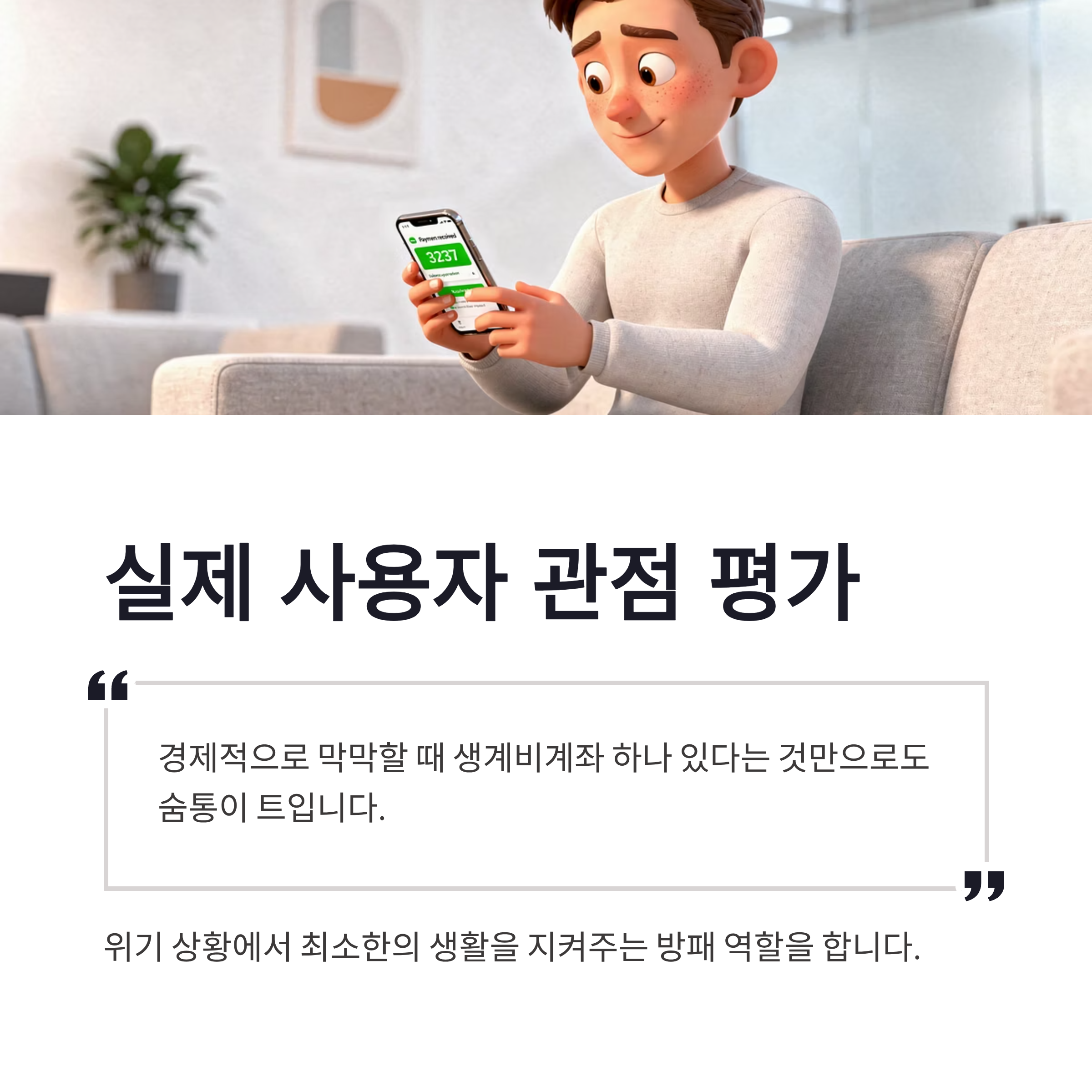 예전에는 생계급여 수급자 위주로만 가능했던 생계비계좌가, 2026년부터는 범위가 확 넓어졌습니다. 일시적인 경제 위기 상황, 채무조정 진행 중인 경우, 공공 생계지원 대상자까지 포함됐어요. 장점은 명확합니다. 압류 걱정 없이 최소 생활비 보호 가능하다는 점. 반면 단점도 있어요. 사용 목적이 제한돼 있어서 자유도는 낮습니다. 저축이나 투자용으로 쓰긴 어렵쥬. 그래도 개인적으로는 “자유도보다 안정감”이 훨씬 크게 느껴졌어요. 특히 경제적으로 막막할 때, 카카오뱅크 생계비계좌 하나 있다는 것만으로도 숨통이 좀 트이더라구요 ㅎㅎ