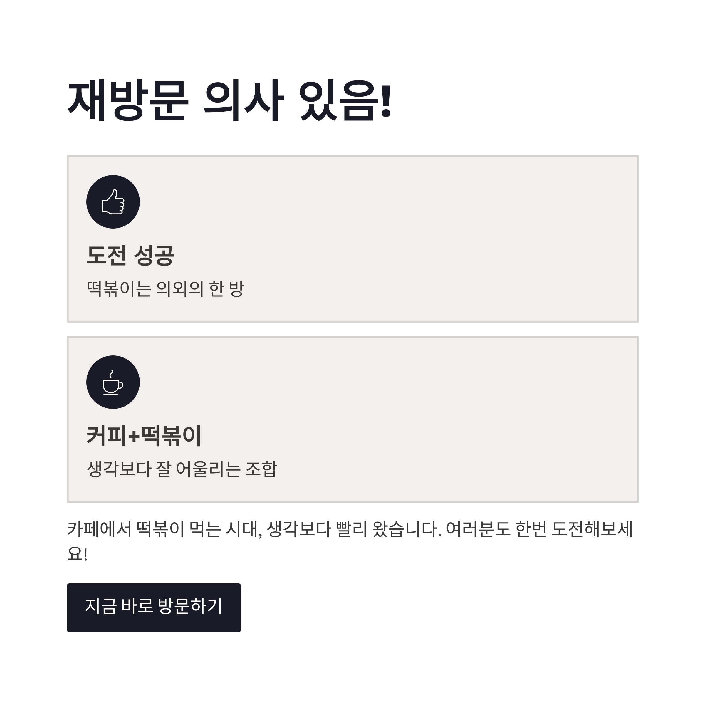 카페에서 떡볶이 먹는 시대… 생각보다 빨리 왔네요. 여러분은 커피랑 떡볶이 조합, 괜찮다고 보세요? 저는 또 먹을 듯요 ㅋㅋ
