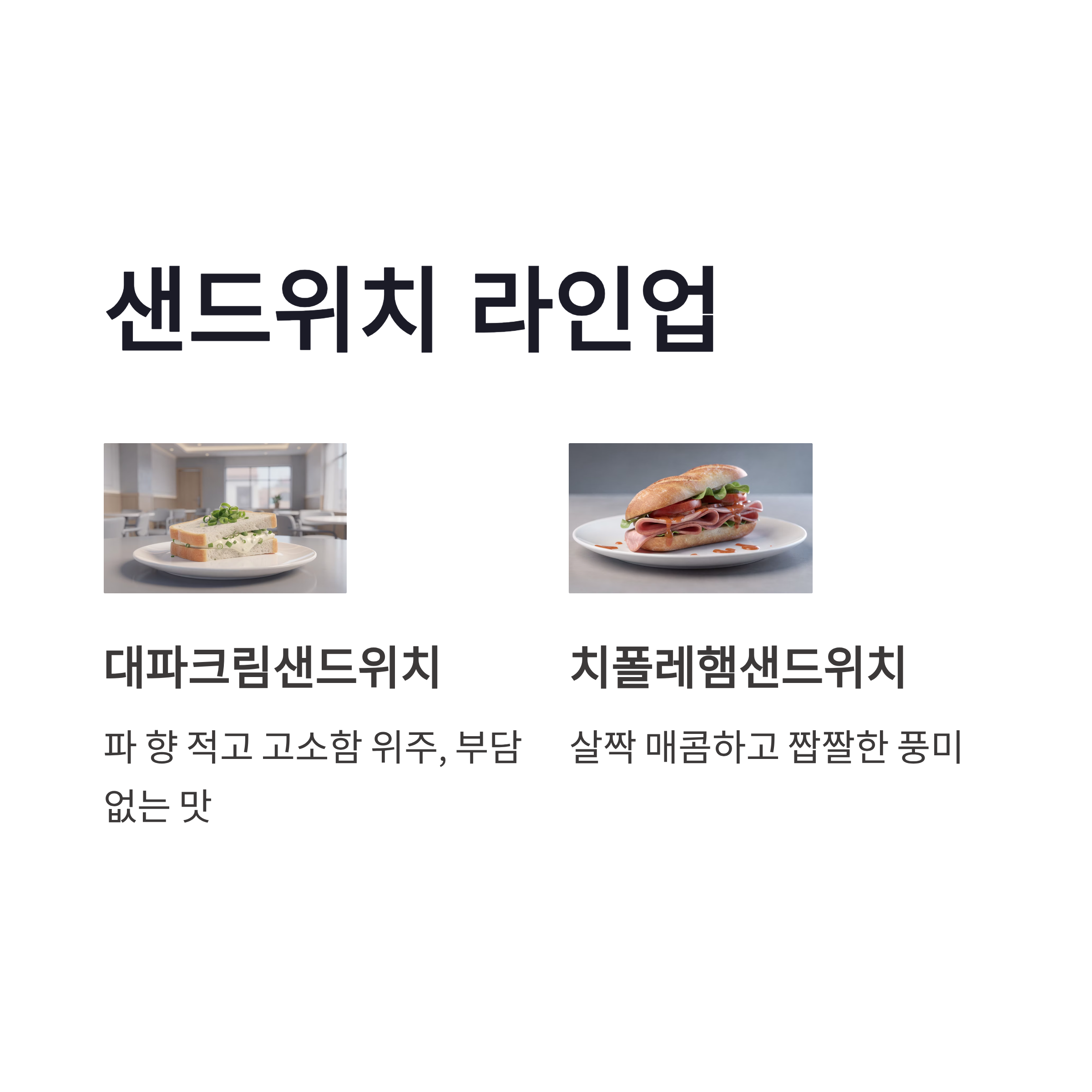 | 대파크림샌드위치 | 3천원대 | 고소·부드러움 | 아이스라떼 |