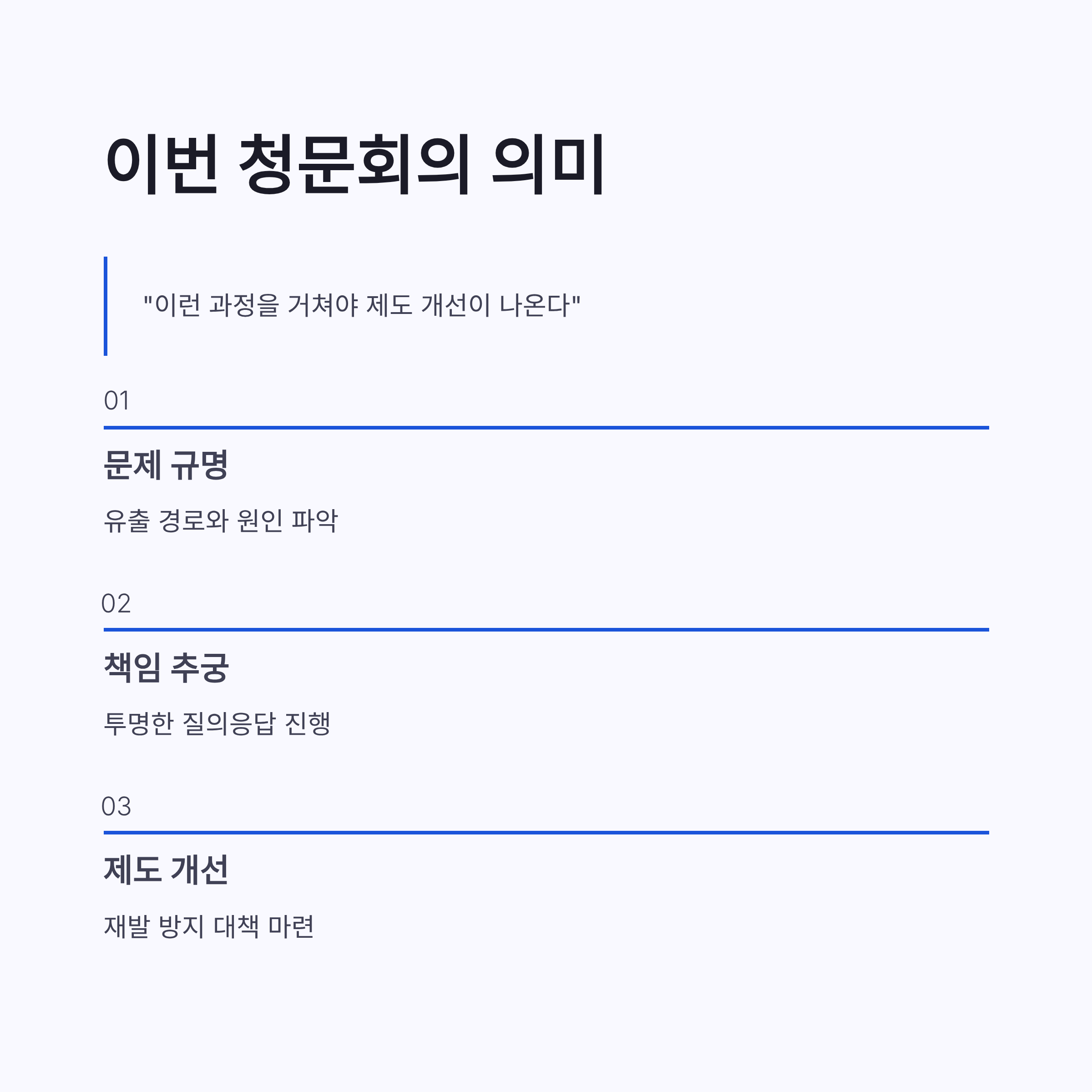 이번 쿠팡 청문회 생중계에서 가장 많이 언급될 부분은 역시 책임 소재입니다. 국회는 보안 체계가 왜 취약했는지, 사고 인지 시점이 왜 늦었는지 등을 집중적으로 따질 예정이에요. 증인으로는 쿠팡 창립자 김범석 의장, 박대준 전 대표, 강한승 전 대표 등이 거론되고 있죠. 질문 방식은 공개 질의응답이라 발언 하나하나가 그대로 기록됩니다. 장점은 투명성, 단점은… 보는 사람 입장에선 살짝 피곤할 수도 있다는 점? 그래도 이런 과정을 거쳐야 제도 개선이 나온다는 생각이 들더라구요.