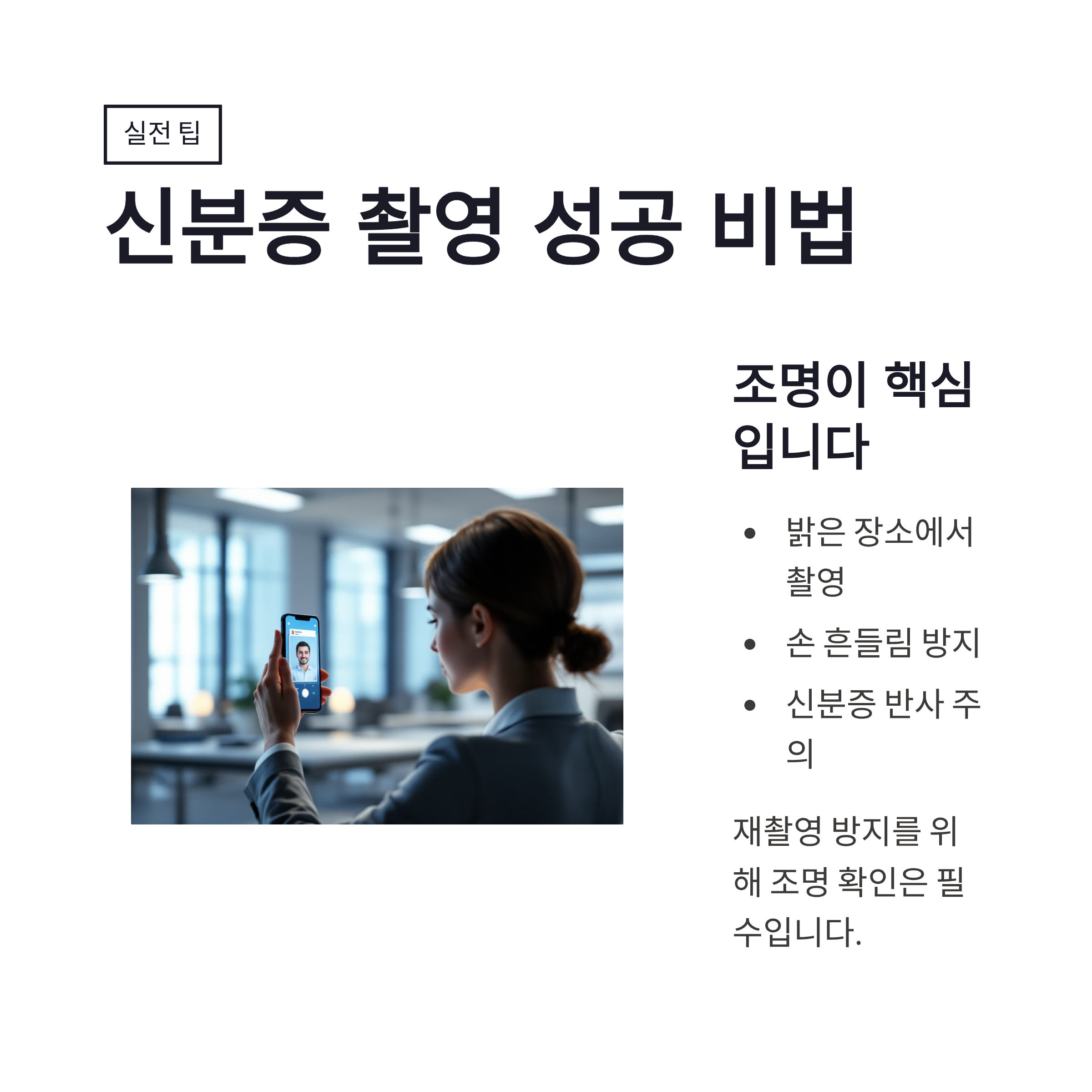 | 3단계 | 신분증 촬영 | 조명 중요… 흔들리면 재촬영 ㅠㅠ |