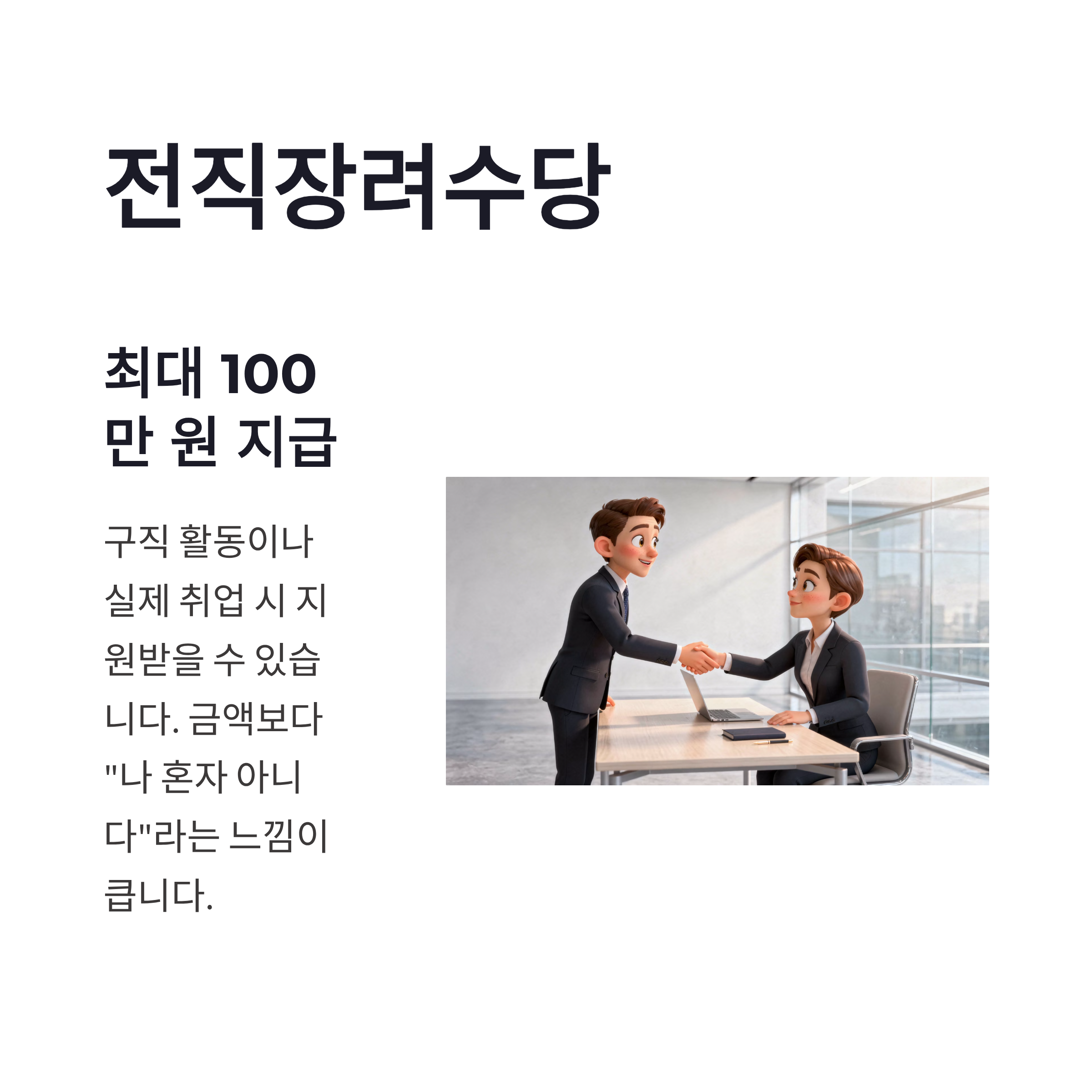 | 전직장려수당 | 최대 100만 원 지급 | 구직·취업 시 |
