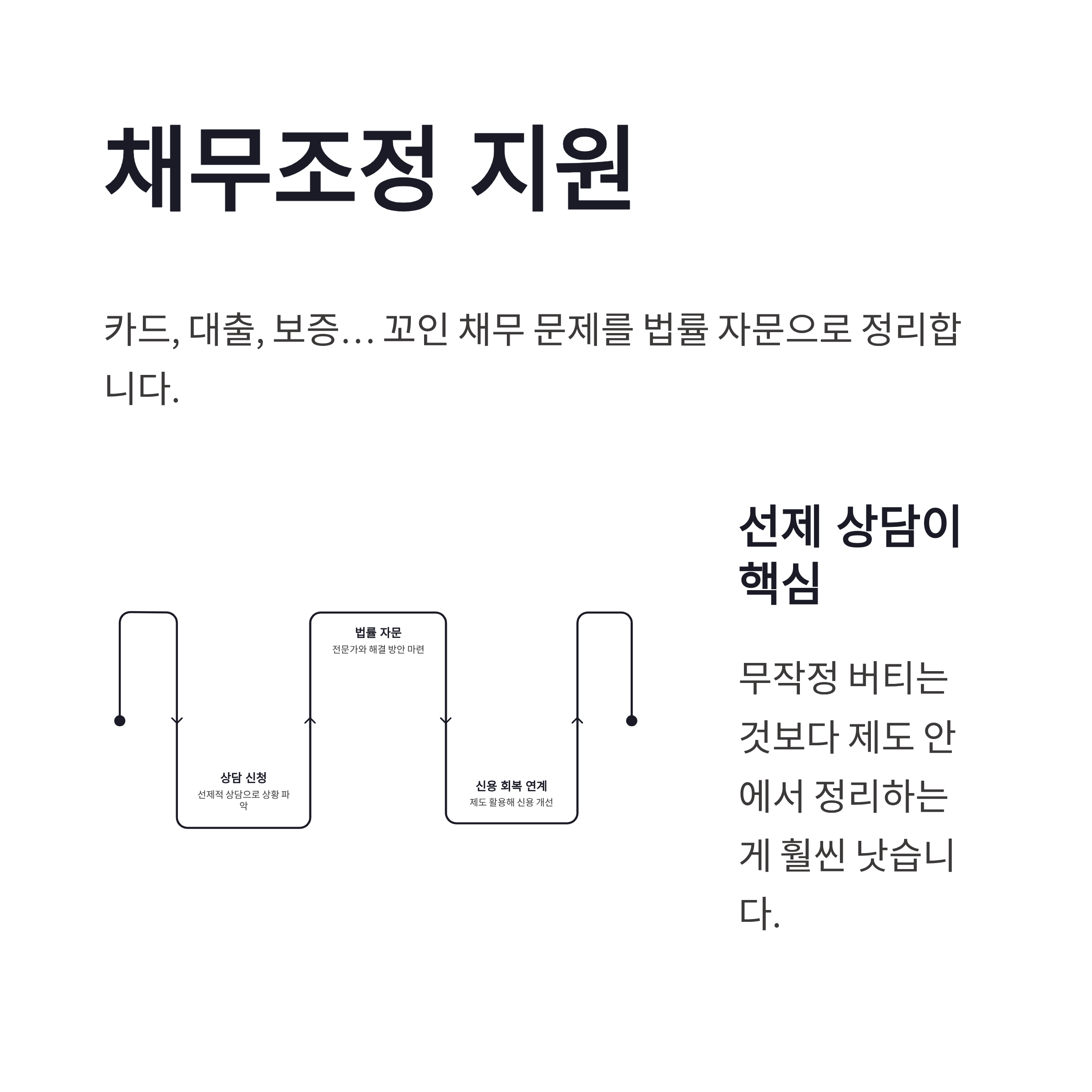 | 채무조정 지원 | 법률 자문·상담 제공 | 신용 회복 연계 |
