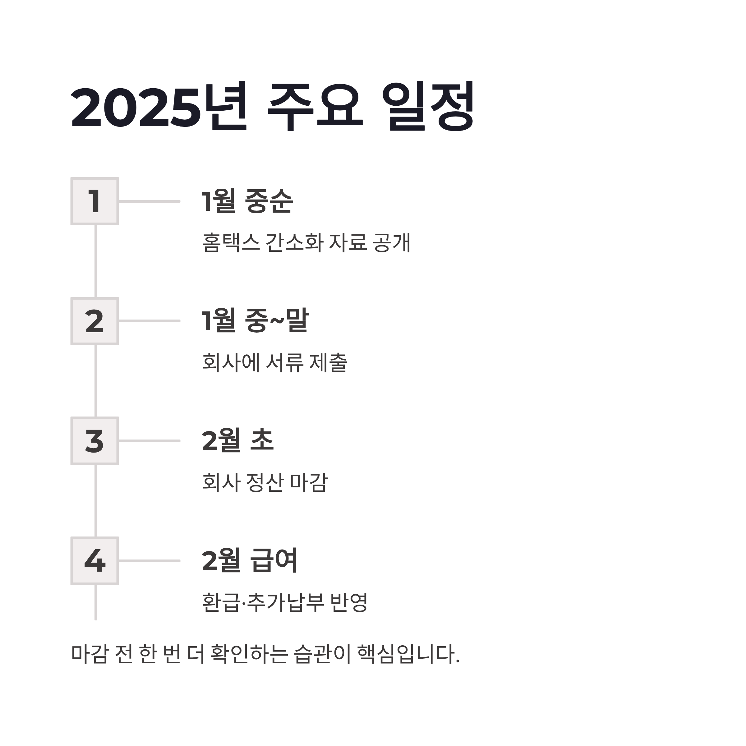 2025년 귀속 연말정산 주요 일정 한눈에 보기