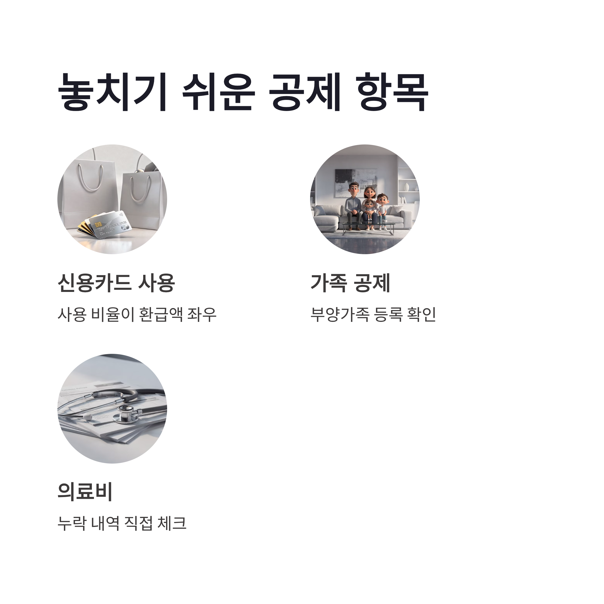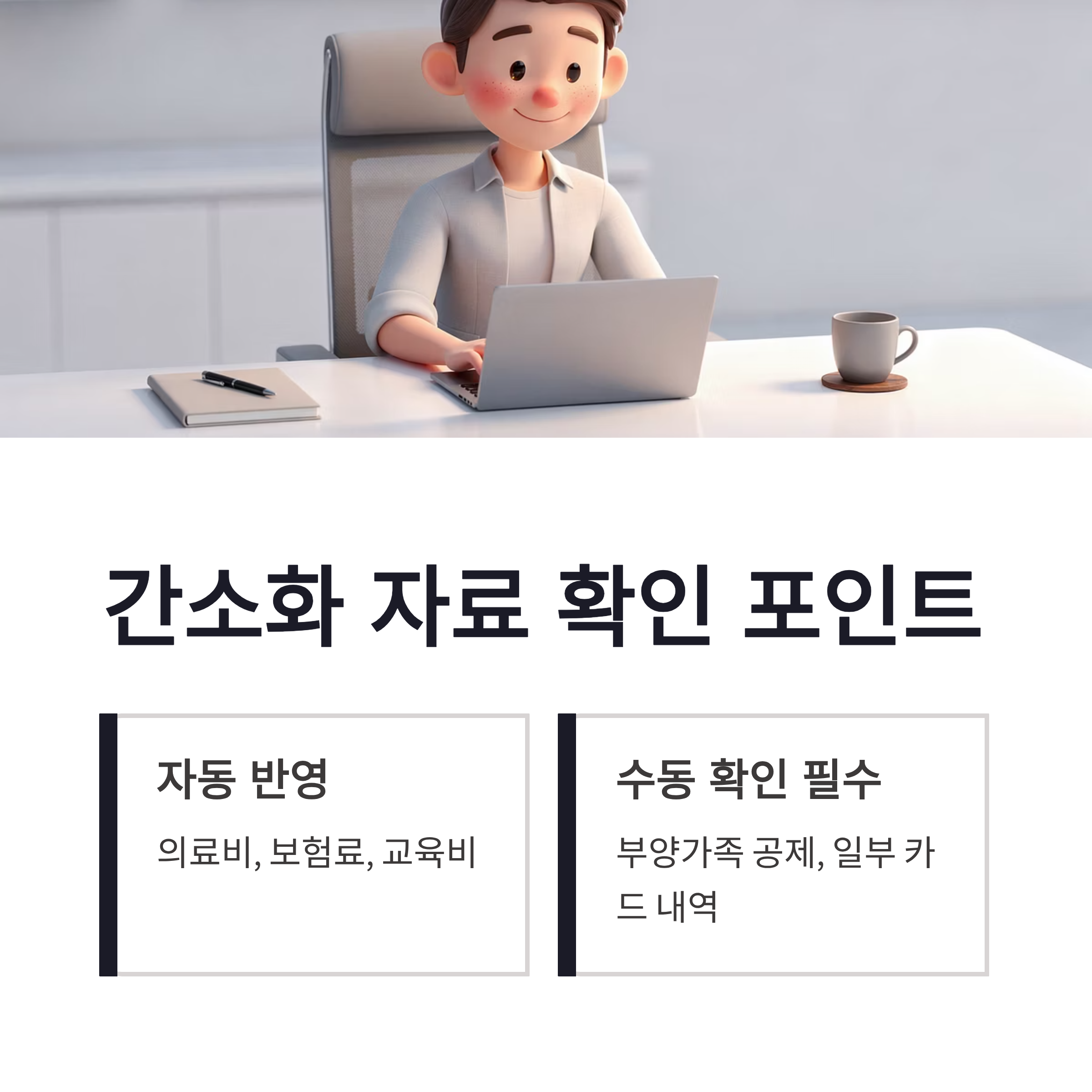 여기서 핵심은 마감 전에 한 번 더 확인하는 습관이었어요. 의료비, 보험료, 교육비는 자동으로 들어오지만, 부양가족 공제나 일부 카드 사용 내역은 누락되는 경우가 은근 있더라구요. 2025년 귀속 연말정산은 특히 신용카드 사용 비율이랑 가족 공제 쪽에서 차이가 크게 느껴졌습니다.