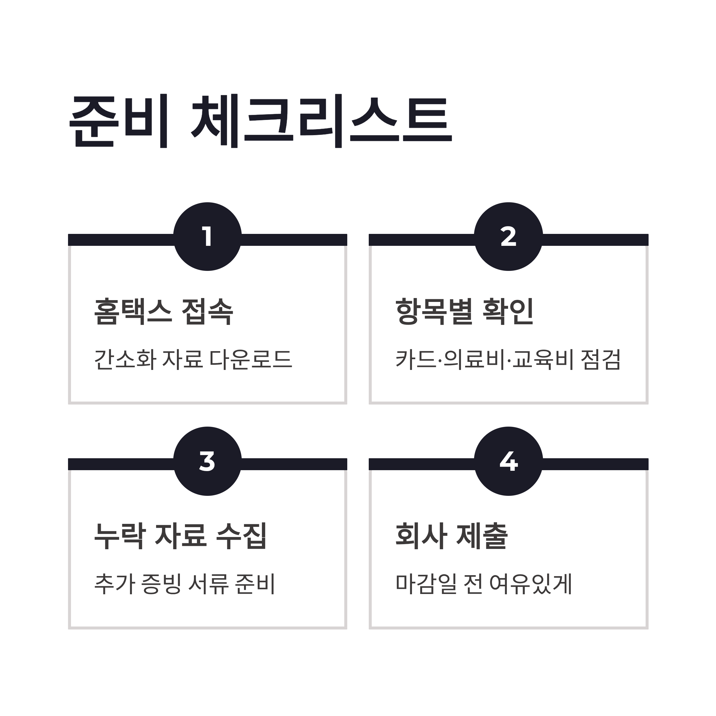 | 서류 제출 기간 | 1월 중~말 | 회사에 증빙자료 제출 |