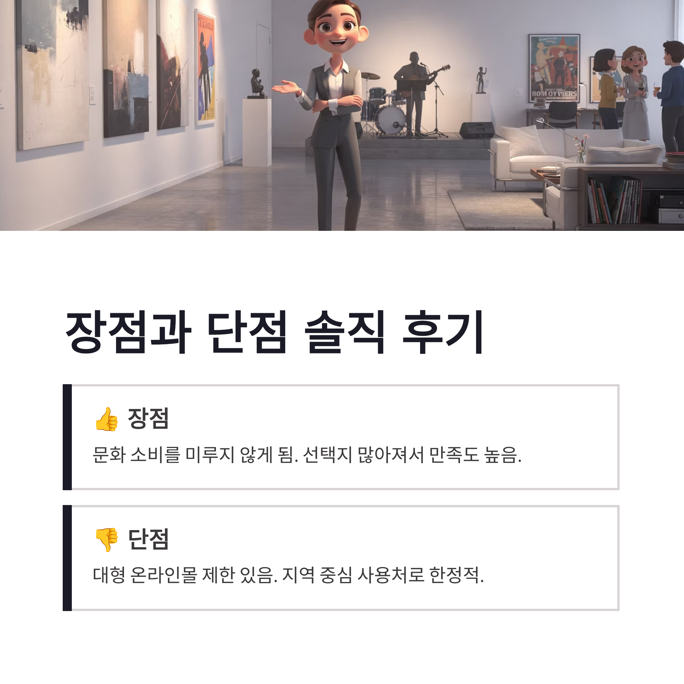 2026년에 들어서 문화누리카드 사용처가 확실히 넓어졌다는 느낌이 들었습니다. 영화관, 서점은 기본이고 공연·전시·국내여행까지 이어지니까 선택지가 많아졌어요. 저는 개인적으로 영화 예매랑 동네 서점에서 제일 많이 썼는데, 결제될 때마다 괜히 기분 좋아짐 ㅋㅋ 장점은 분명합니다. 문화 소비를 미루지 않게 된다는 점. 반대로 단점은 대형 온라인몰에서는 여전히 제한이 있다는 부분인데요. 그래도 지역 중심 문화생활용으로는 충분하다고 느꼈습니다.
