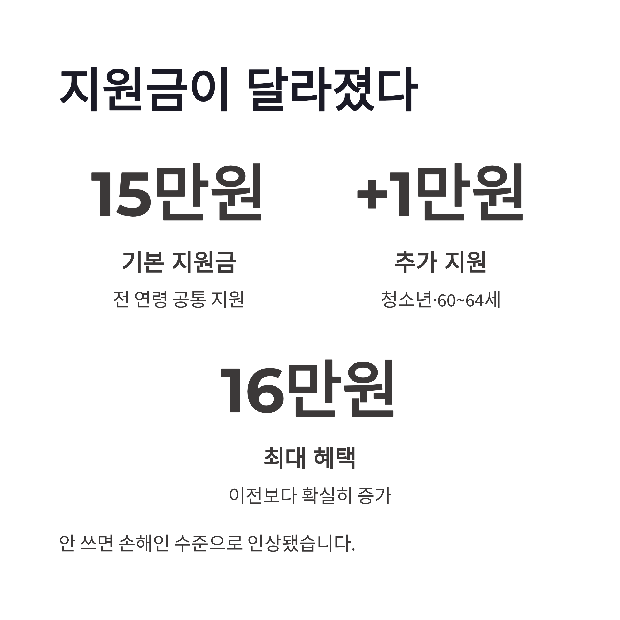 | 기본 지원금 | 150,000원 | 전 연령 공통 |