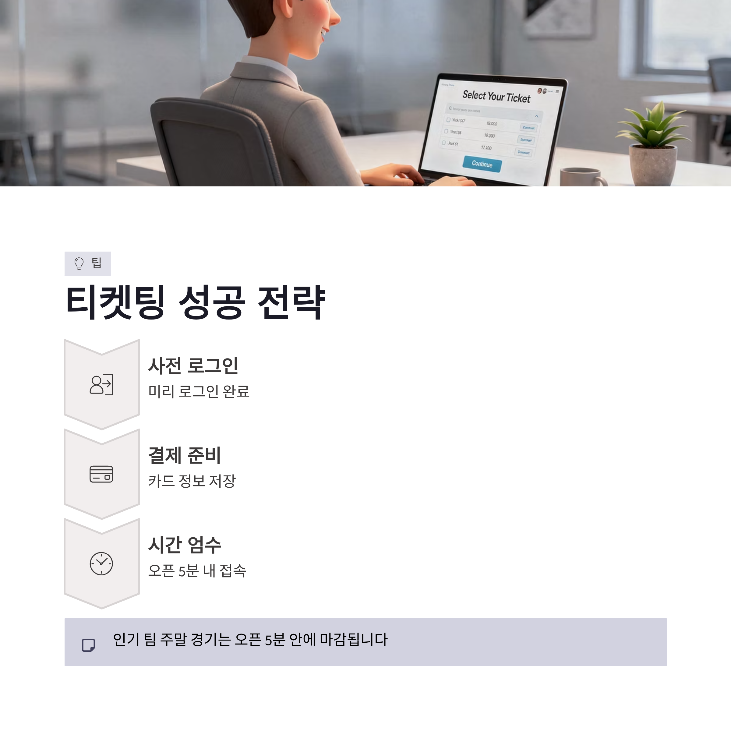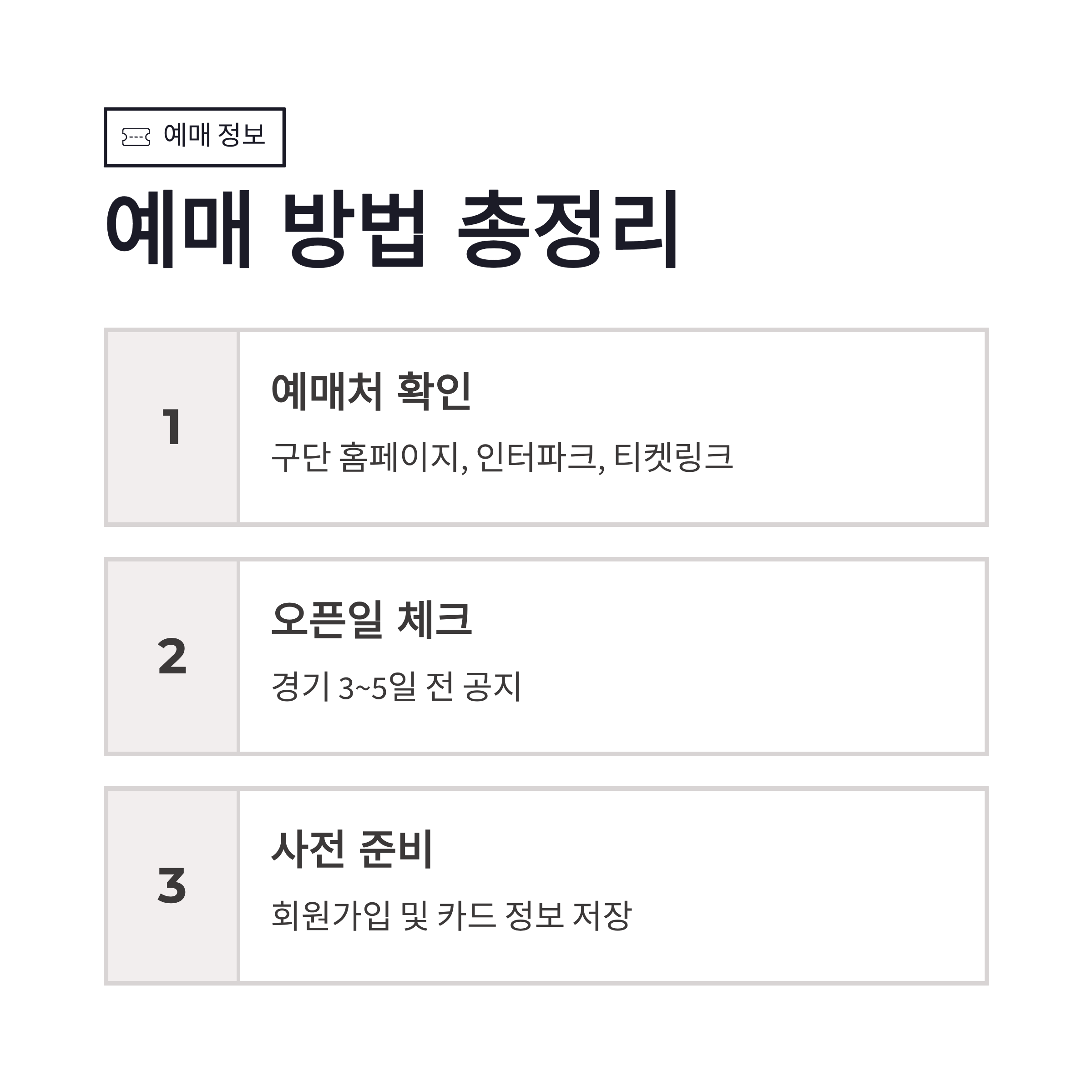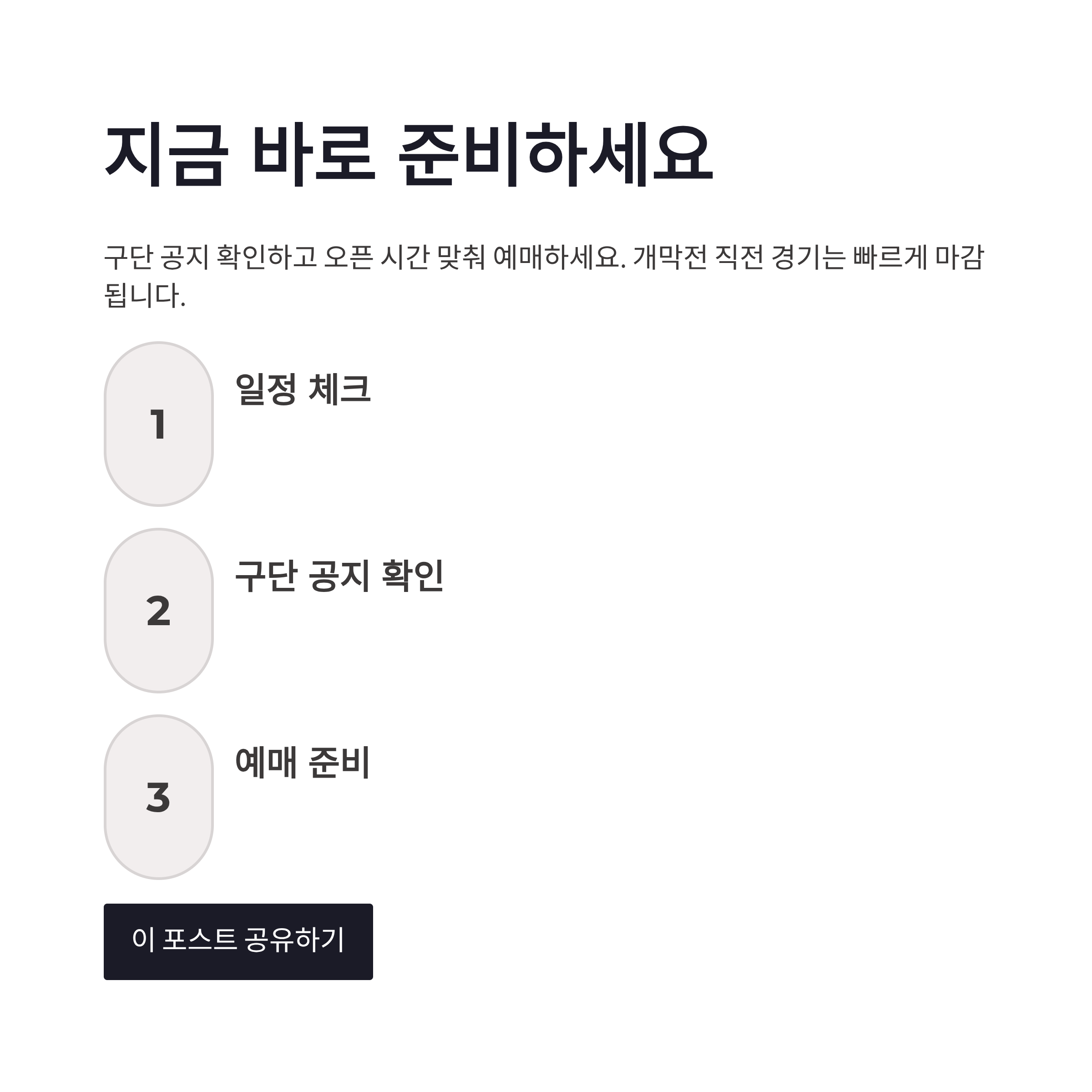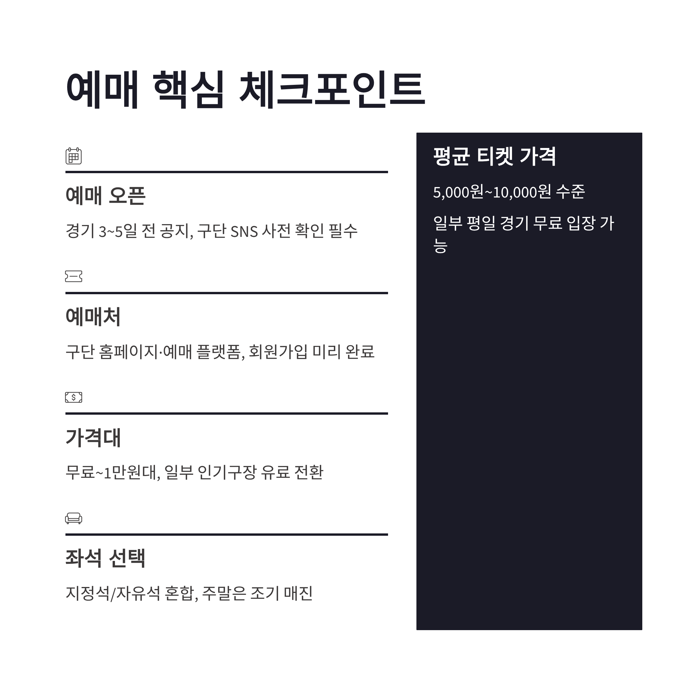 | 예매처 | 구단 홈페이지·예매 플랫폼 | 회원가입 미리 완료 |