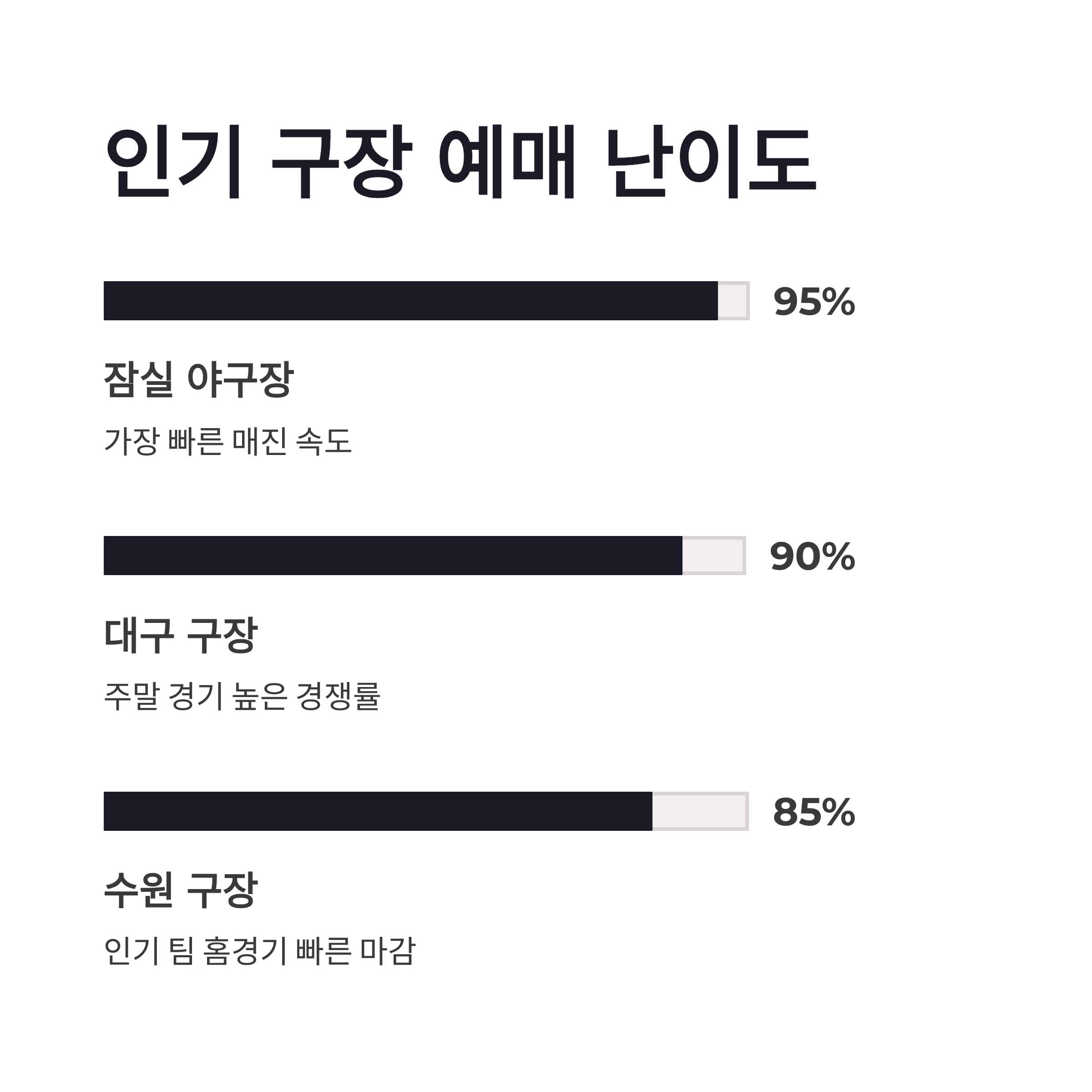 제 경험상 팁 하나. 로그인 미리 해두고, 카드 정보 저장해두면 성공 확률이 확 올라갑니다. 인기 팀 주말 경기는 오픈 5분 안에 마감되는 경우도 있더라구요. 특히 잠실, 대구, 수원은 체감상 빠릅니다.