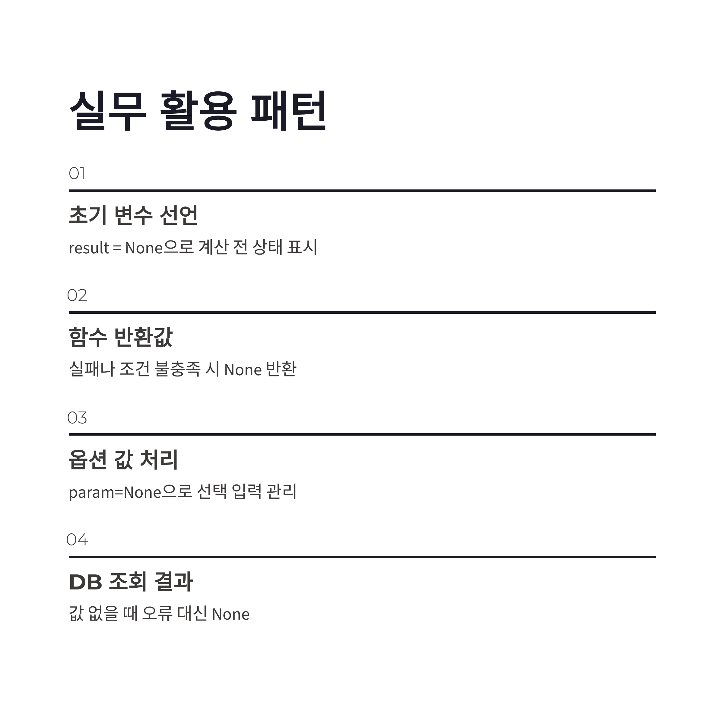 | 사용 상황 | None 활용 예 | 체감 포인트 |