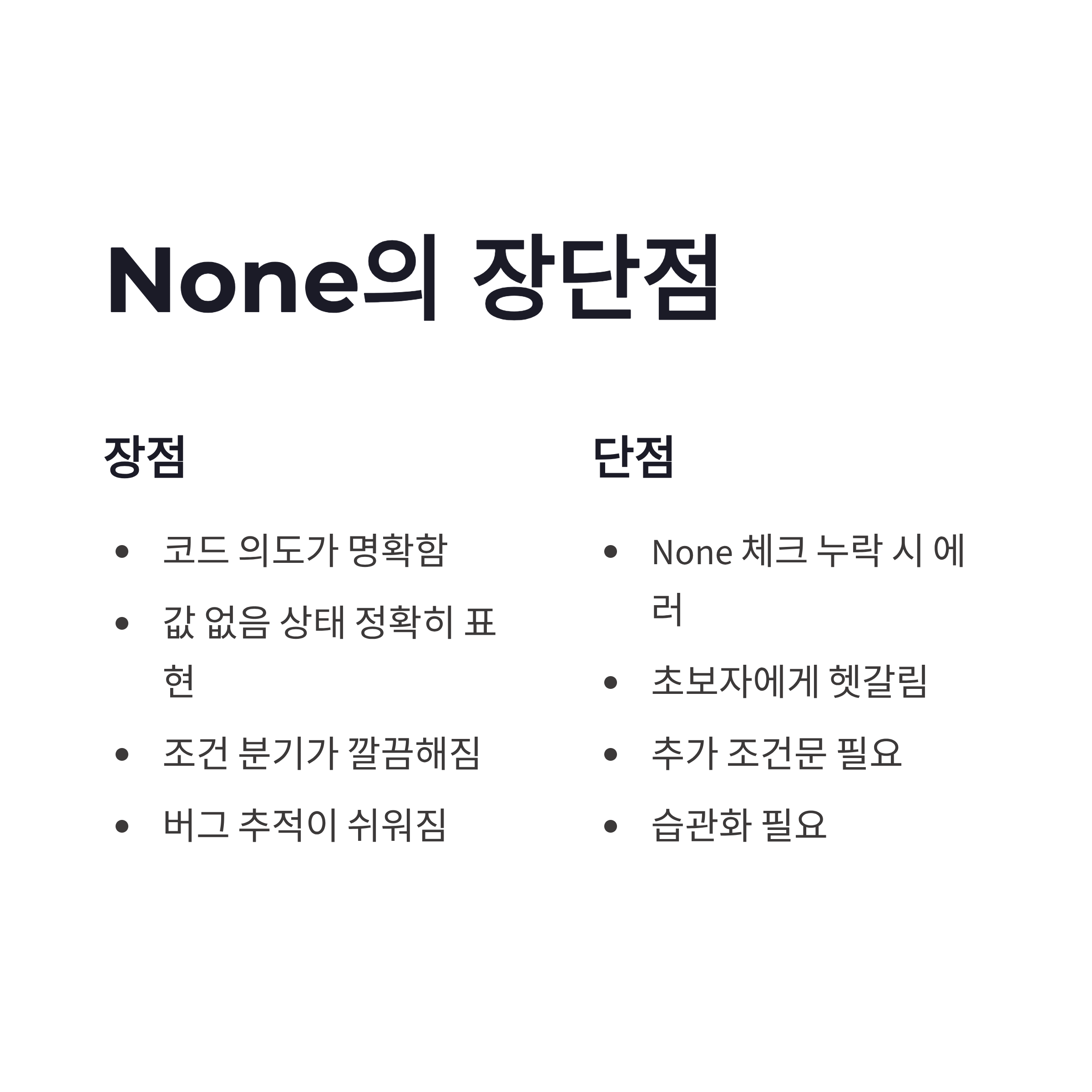 None 활용 트렌드와 장단점