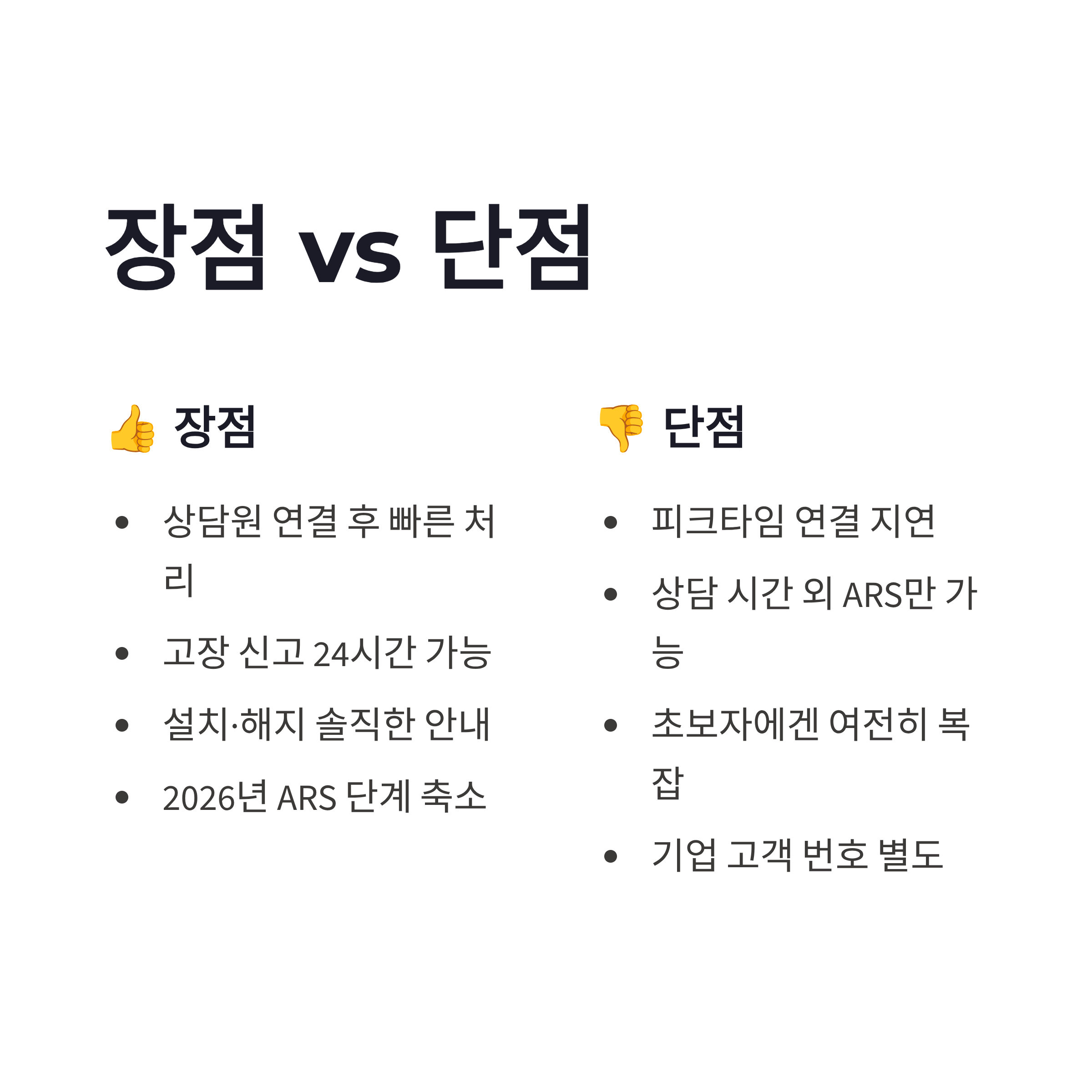 2026년 들어 상담 시스템이 좀 정리된 느낌은 있어요. 예전보다 음성 단계는 줄었는데, 여전히 초보자에겐 헷갈릴 수 있음… 장점은 상담원 연결되면 처리 속도가 빠르다는 점. 설치·이전·해지 문의도 비교적 솔직하게 설명해주더라구요. 단점이라면, 상담 시간 외엔 다시 ARS 지옥 ㅠㅠ 그래도 SK브로드밴드 고객센터는 고장 신고 24시간이라 급할 땐 진짜 든든했슴다.