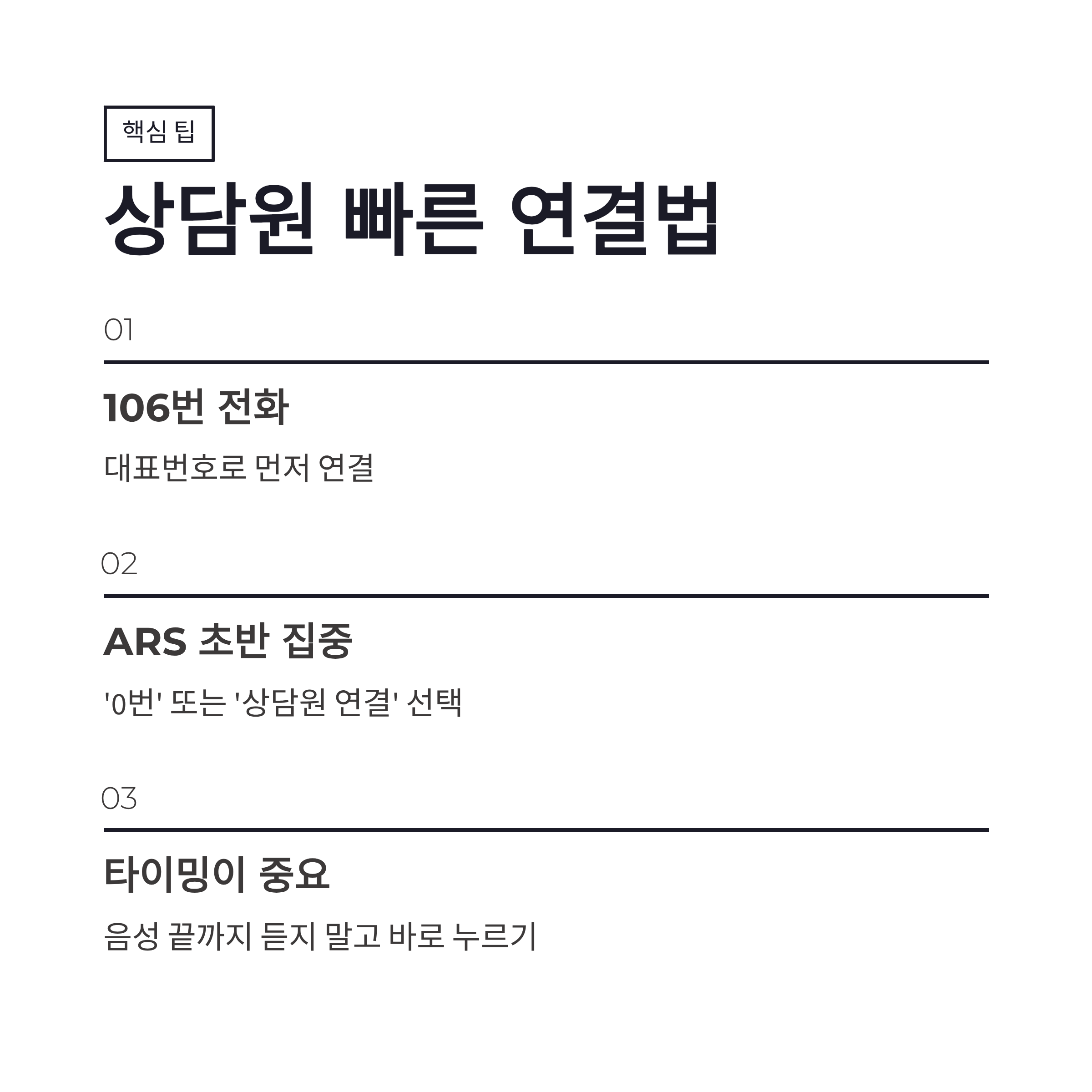 | 꿀팁 | ARS 초반에 ‘0번’ 또는 ‘상담원 연결’ 선택 |