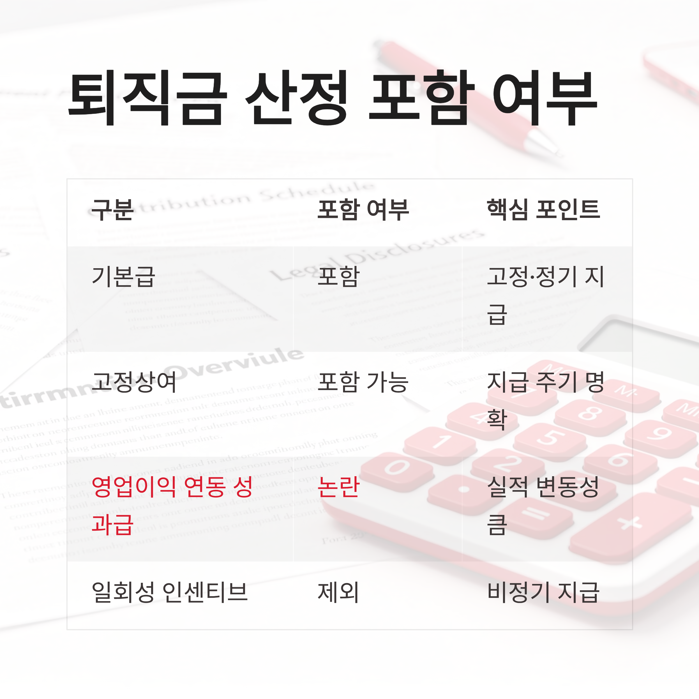 | 구분 | 퇴직금 산정 포함 여부 | 핵심 포인트 |